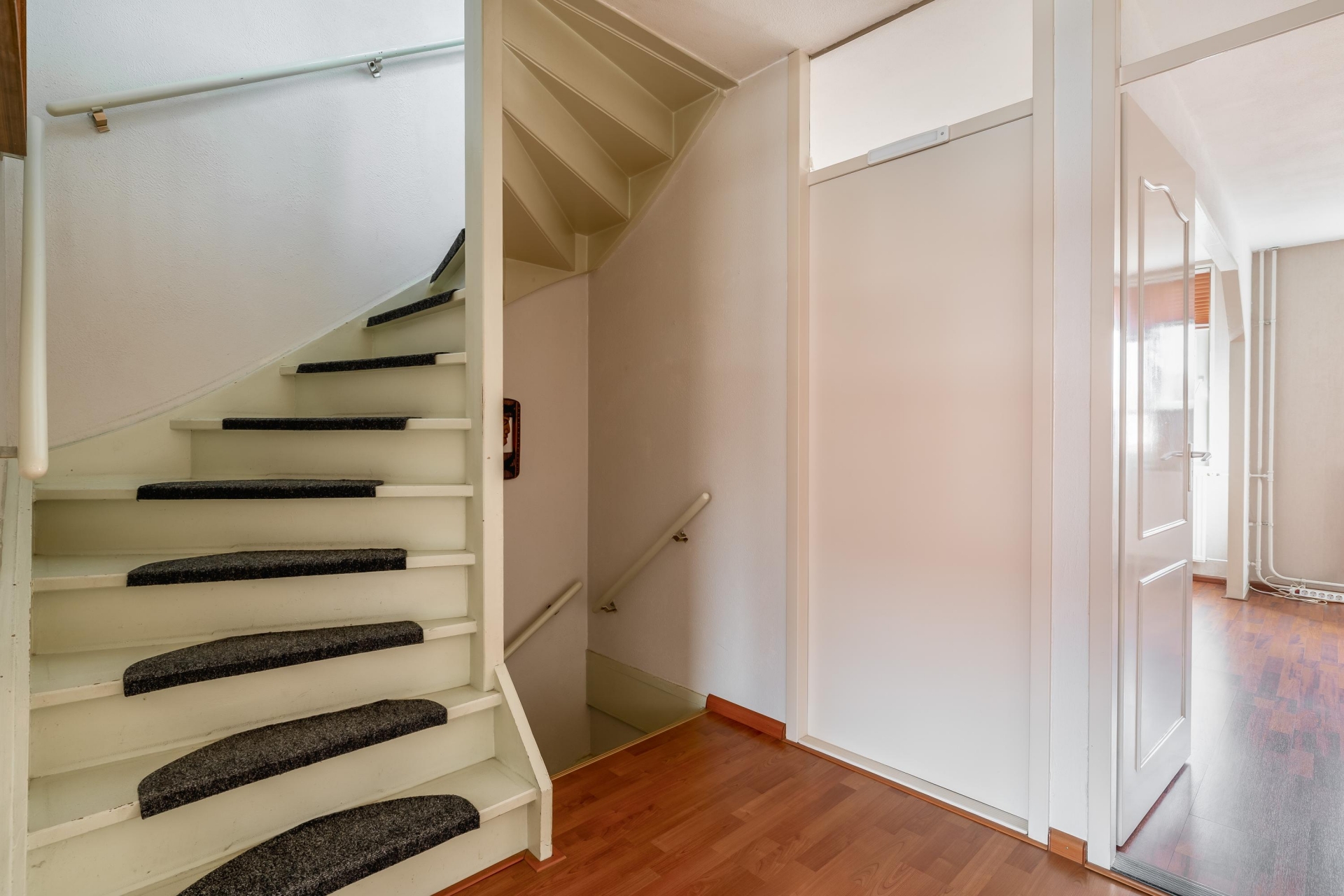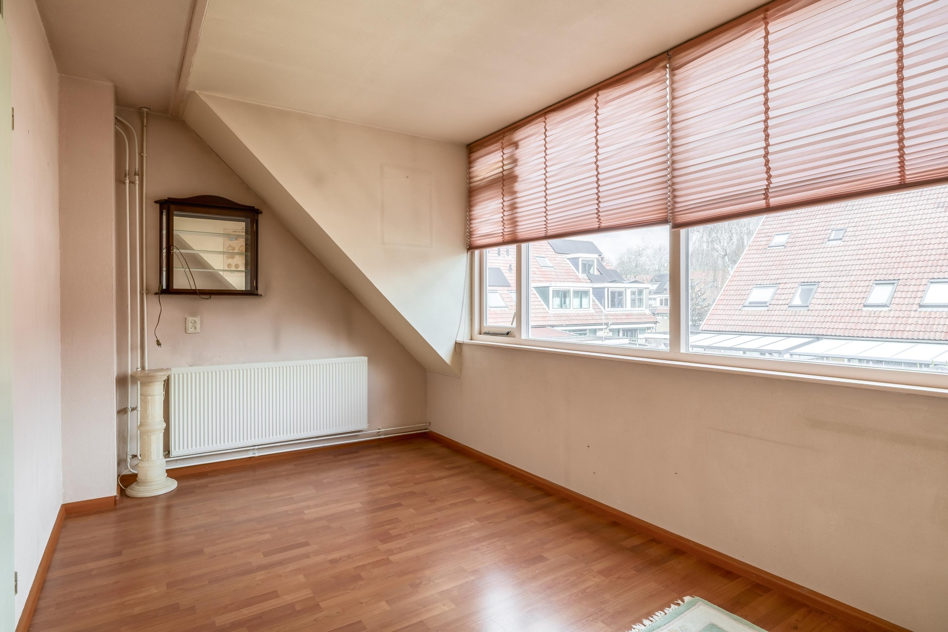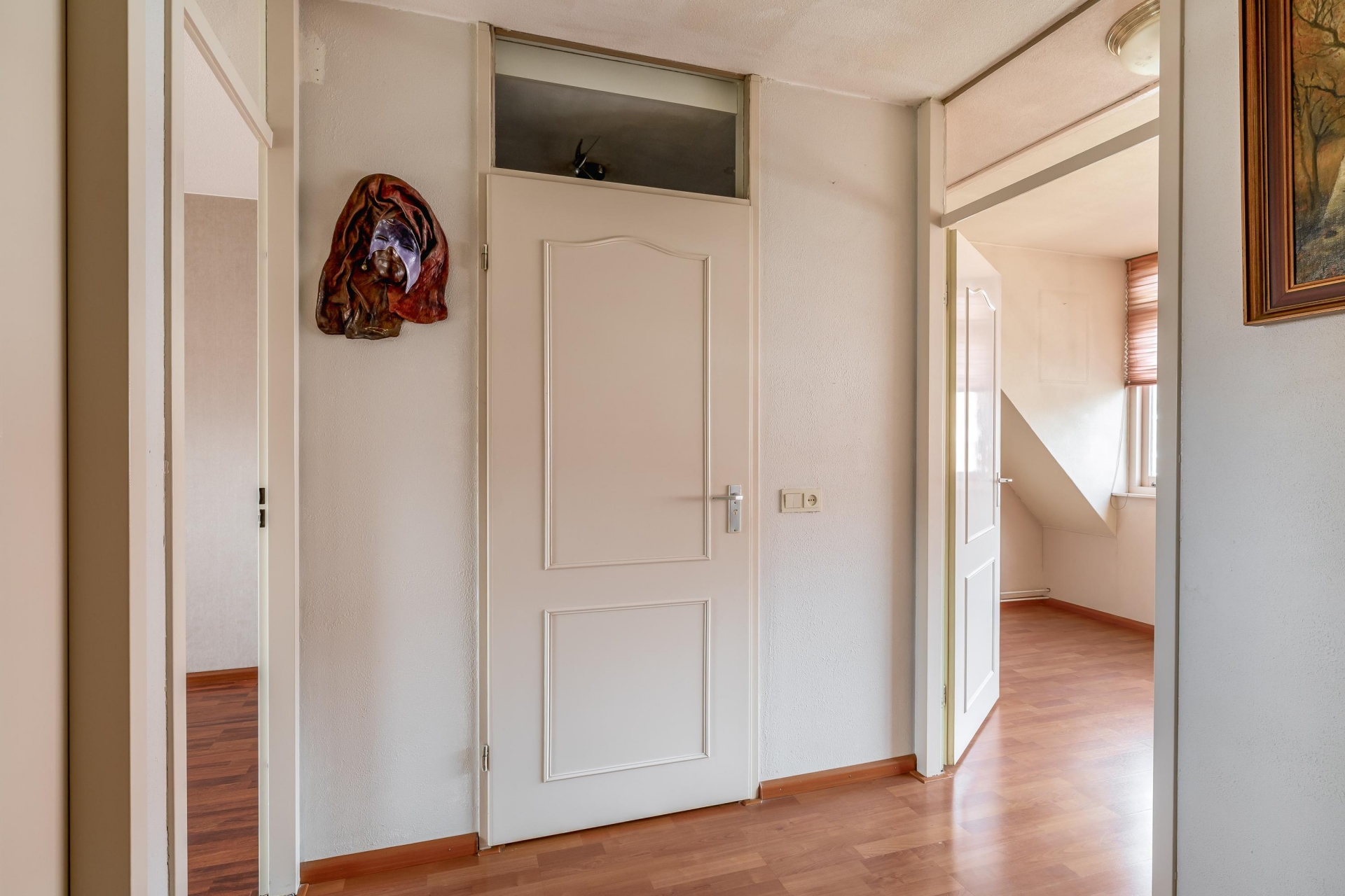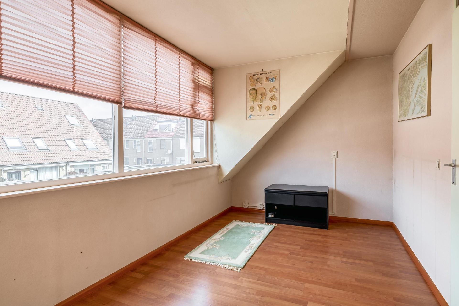 Op de eerste verdieping zijn drie slaapkamers waarvan 1 met dakkapel aan de achterzijde. De huidige indeling biedt een royale slaapkamer doordat twee kamers zijn samengevoegd. Voor wie extra kamers nodig heeft, is dit eenvoudig weer terug te brengen naar de oorspronkelijke situatie. De grootste slaapkamer ligt aan de voorzijde en biedt voldoende ruimte voor een groot bed en een kledingkast. De overige kamers zijn ideaal als kinderkamer, werkkamer of inloopkast.