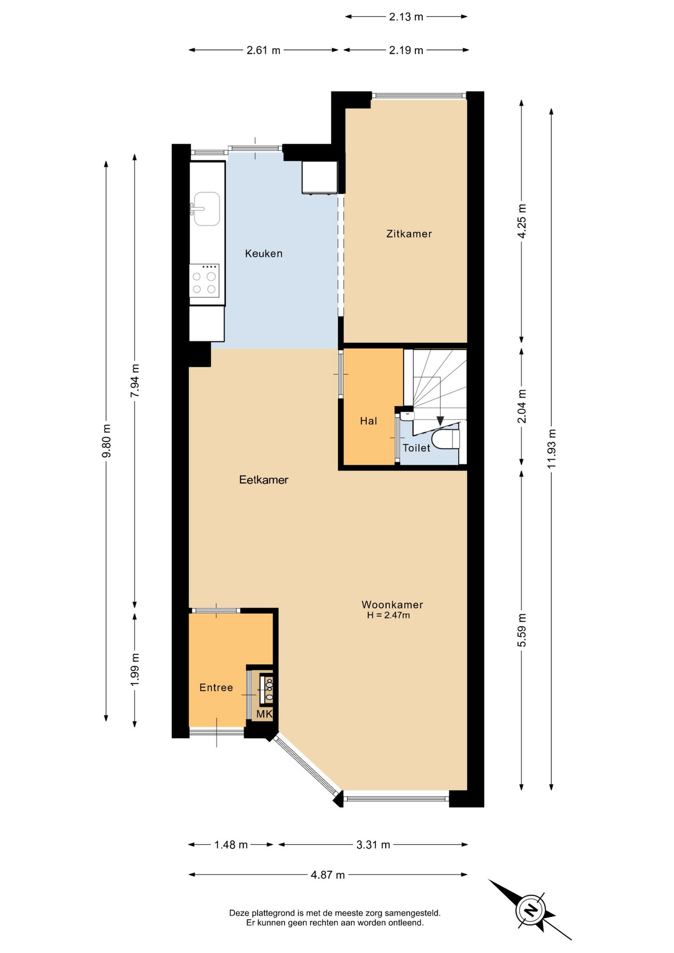 “Deze informatie is door ons met de nodige zorgvuldigheid samengesteld. Onzerzijds wordt echter geen enkele aansprakelijkheid aanvaard voor enige onvolledigheid, onjuistheid of anderszins, dan wel de gevolgen daarvan. Alle opgegeven maten en oppervlakten zijn indicatief.”