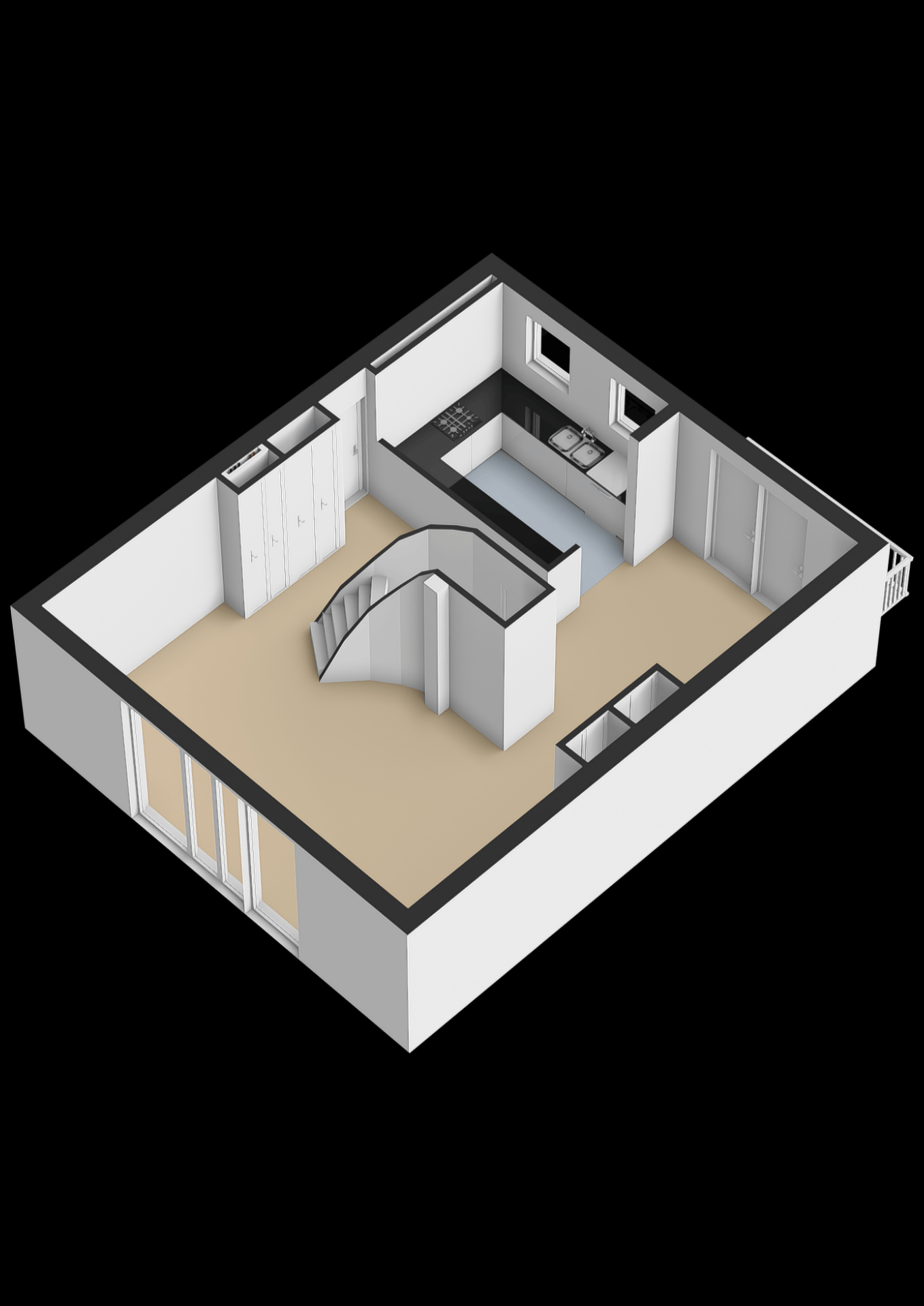 Daarnaast zijn er twee ruime bergingen, ideaal voor opslag, fietsen of gereedschap. In één van de bergingen bevinden zich tevens de aansluitingen voor wasmachine en droger. De hoogteverschillen in het souterrain (tot circa 2,30 m) geven de ruimte een speels karakter en benadrukken het unieke ontwerp van het huis.