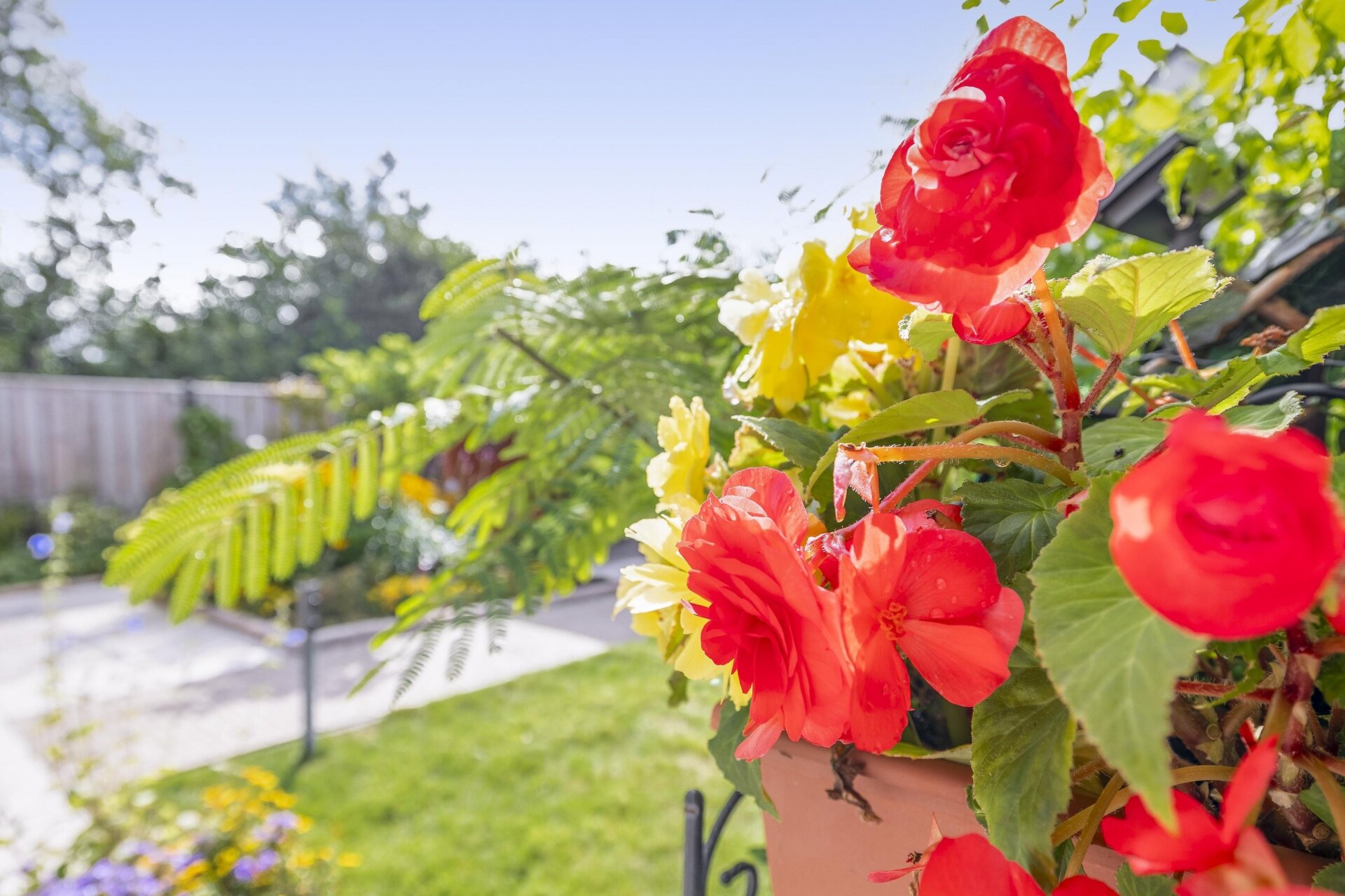 Keurig onderhouden voortuin en achtertuin. Achtertuin extra breed en gelegen op het zuiden-zuidoosten. Voortuin betreft gemeentegrond in gebruik zonder enige betaling. Hier vindt u een parkeerplaats/oprit.