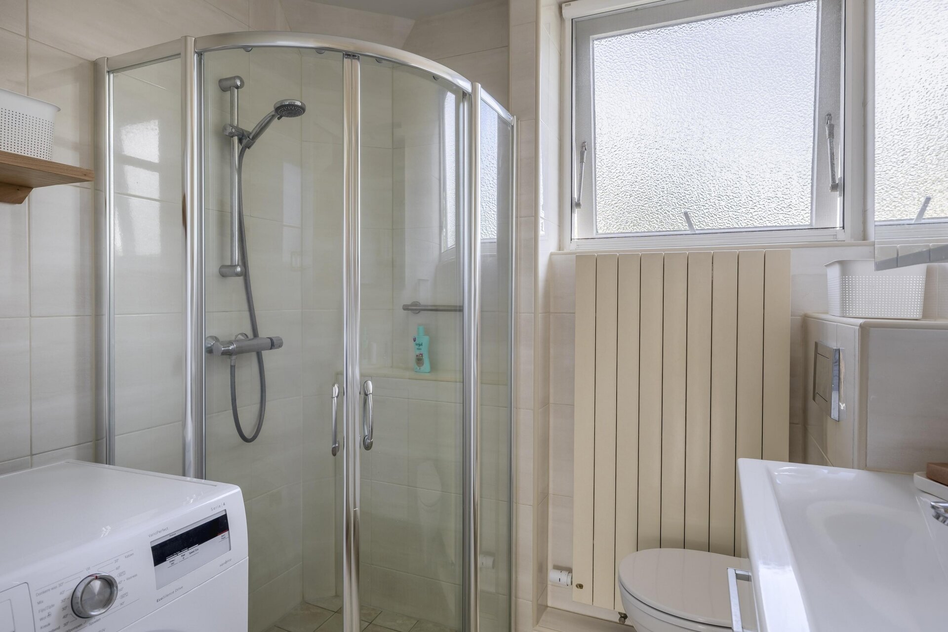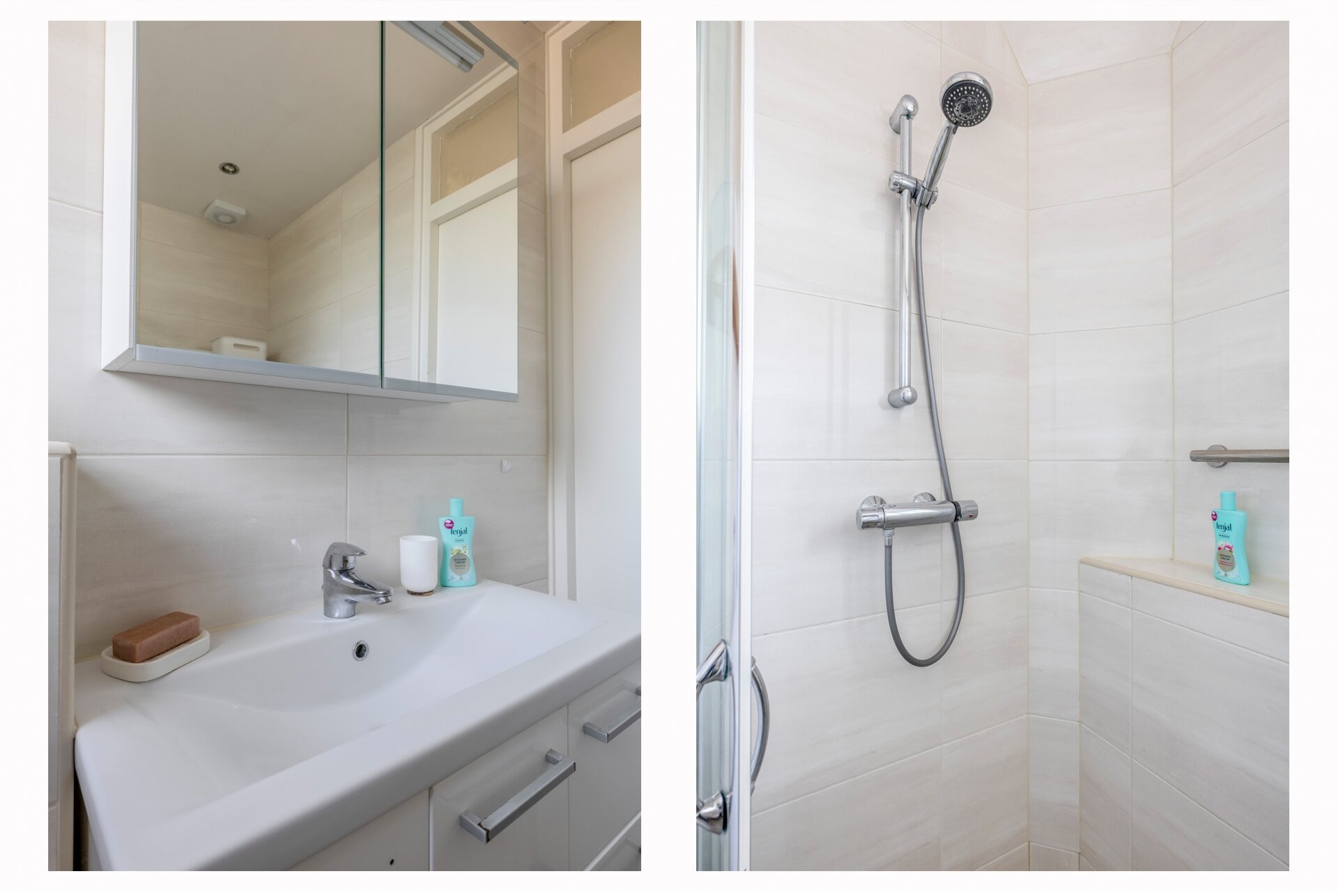 Overloop; slaapkamer 1; slaapkamer 2; nette badkamer voorzien van een wastafel met meubel, douche en 2e toilet; 3e slaapkamer aan de voorzijde van de woning.