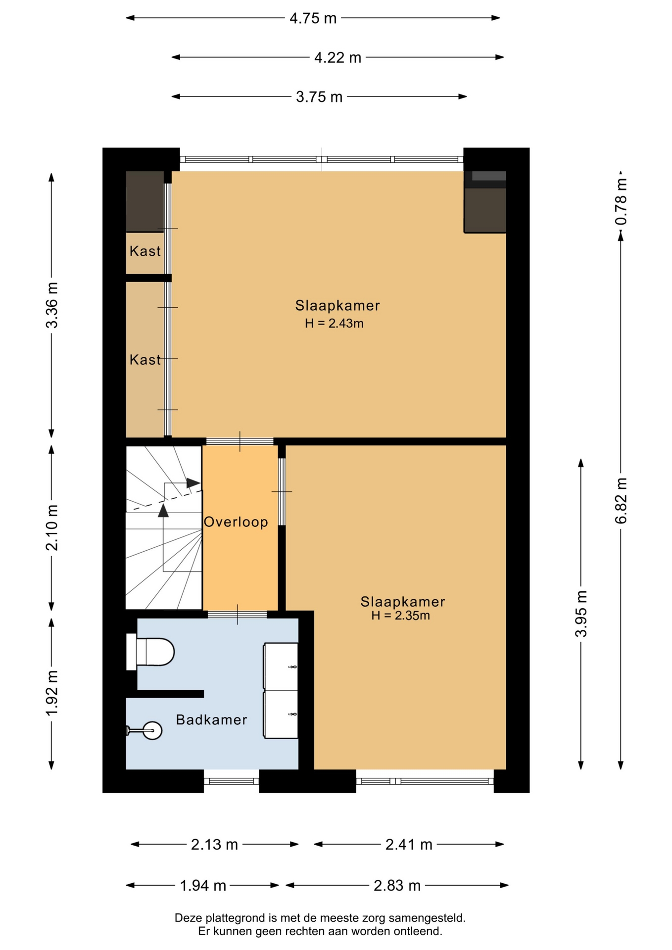 Op de eerste verdieping bevinden zich twee slaapkamers, waaronder een netjes afgewerkte, ruime hoofdslaapkamer aan de achterzijde met vaste kastenwand, dakkapel (2017) met elektrisch bedienbare rolluiken en een airco (inverter). De tweede slaapkamer is eveneens netjes afgewerkt en ideaal als kinderkamer, werkkamer of logeerkamer. Op de tweede verdieping biedt zich een derde slaapkamer met een dakkapel (2021), voorzien van elektrisch bedienbare rolluiken en nieuw Velux dakraam. Vanwege deze dakkapel is er ruimte genoeg en kan deze kamer ook eenvoudig in twee slaapkamers worden opgesplitst. De badkamer is uitgevoerd in een moderne stijl met een mooi wastafelmeubel, nieuwe designradiator en ruime inloopdouche.