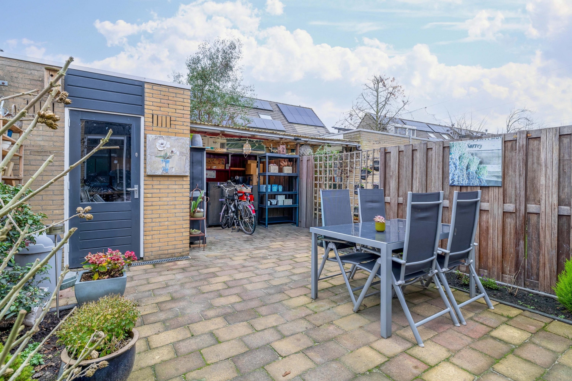 De achtertuin is verzorgd aangelegd, er zijn mooie borders met beplanting geplaatst. De tuin biedt veel privacy en er is voldoende ruimte voor bijvoorbeeld een loungeset. Naast de berging is een overkapping geplaatst, ideaal voor extra opbergruimte of een droge plek voor de fietsen. De achtertuin ligt op het noordwesten, wat betekent dat je hier 's middags en 's avonds volop van de zon kunt genieten! De voortuin is volledig betegeld en hiermee is er parkeergelegenheid voor twee auto’s.