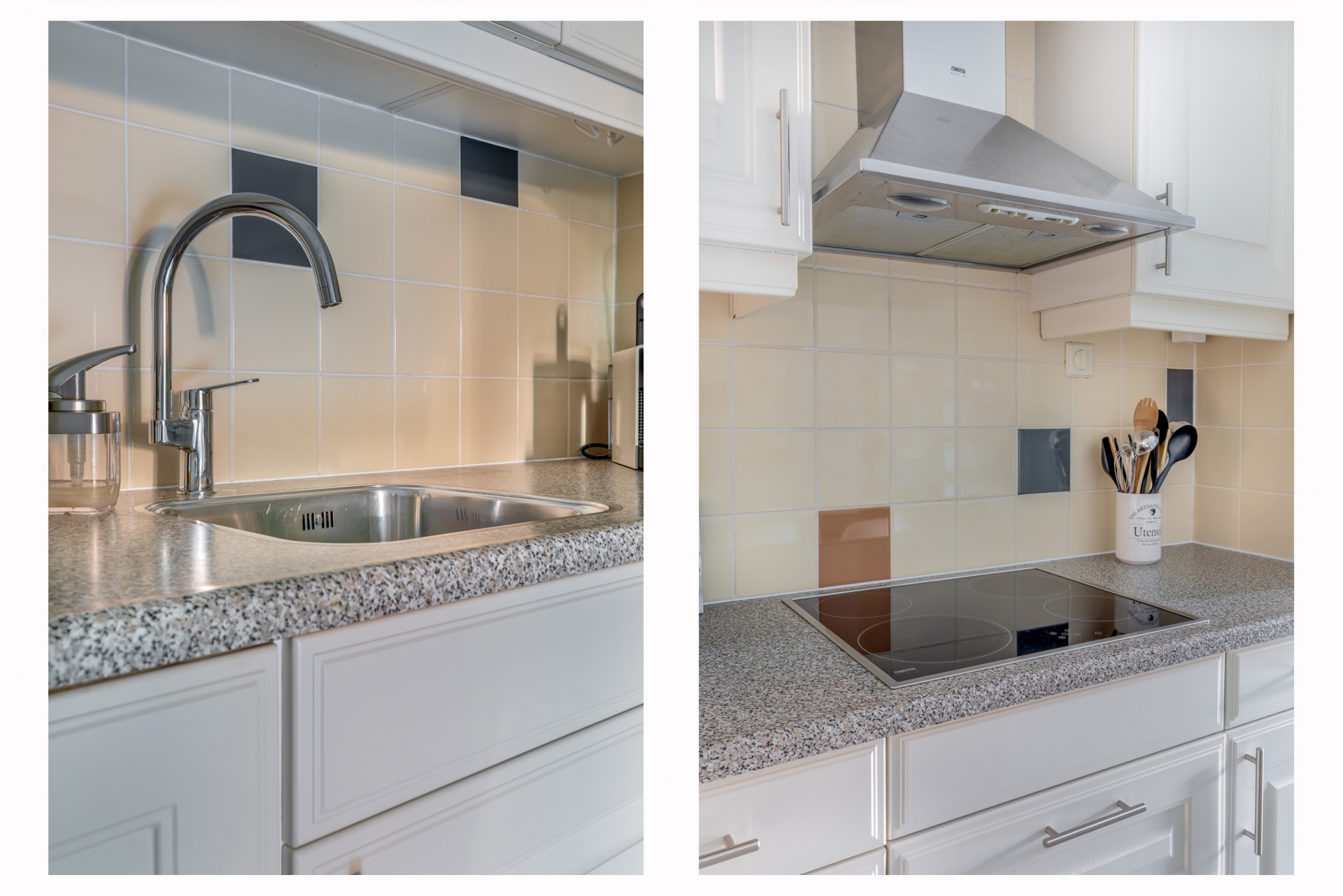 Naast de keuken ligt de tussenhal, die toegang biedt tot de twee slaapkamers, een separaat toilet met fonteintje en de badkamer.