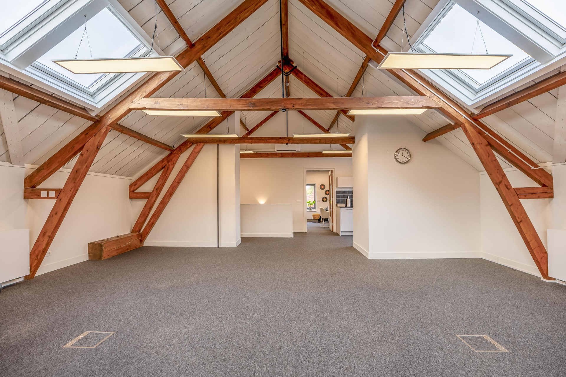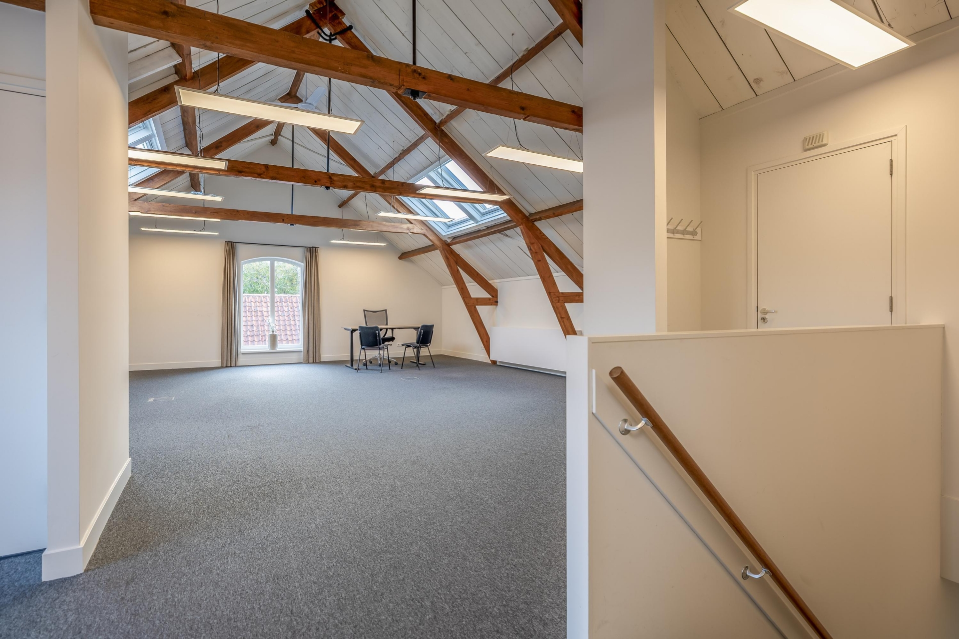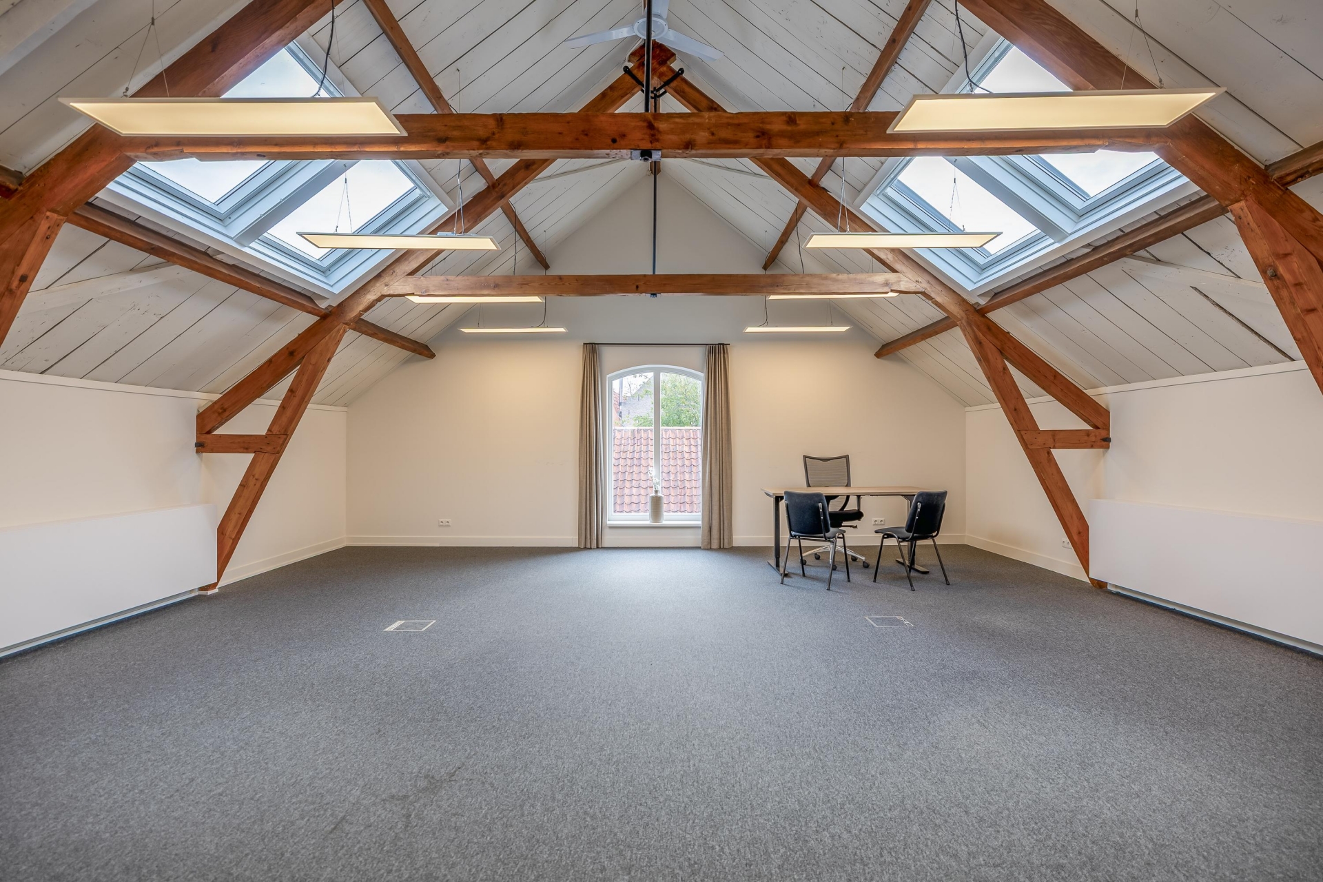 Op dit moment wordt het pand gebruikt als kantoorruimte, maar de bestemming laat ook wonen toe. Hierdoor biedt de bovenverdieping volop kansen voor wie op zoek is naar een unieke en karaktervolle woonruimte op een centrale locatie. De ruimte is al voorzien van een pantry met koelkast en de basisvoorzieningen zijn aanwezig. Het pand is casco gerenoveerd; de basis is dus gelegd. Je vindt hier een grote open ruimte op de eerste verdieping met fraai balkenplafond, vernieuwde kozijnen, elektrische dakramen, dakisolatie en vloerafwerking. Ook zijn de voorbereidingen getroffen voor leidingwerk en ventilatie. Ideaal voor wie op zoek is naar een eigen indeling, zonder te hoeven beginnen bij nul.