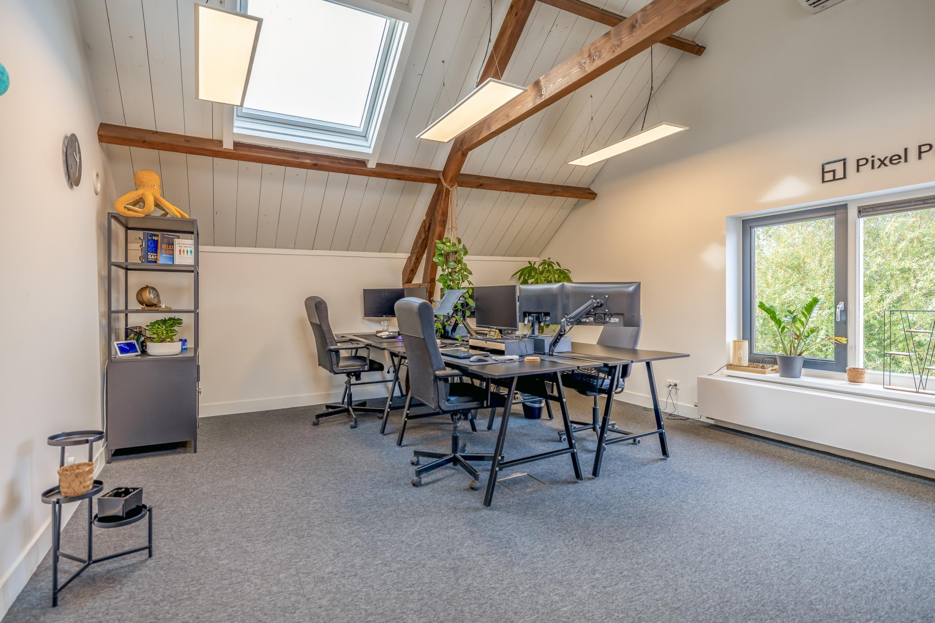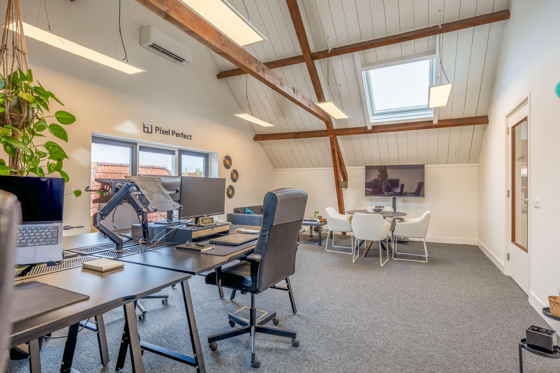 ’t Koetshuis is een pand dat opvalt – niet door zijn grootte, maar door zijn uitstraling. De robuuste bakstenen gevel, hoge ramen en authentieke kapconstructie geven het gebouw een stoere en professionele look. Achter die karakteristieke buitenkant vind je een kantoorruimte die in 2019 van top tot teen is vernieuwd. Denk aan strak afgewerkte muren, een comfortabele vloerafwerking, energielabel A+ en voorzieningen als airco, een pantry en een net toilet.