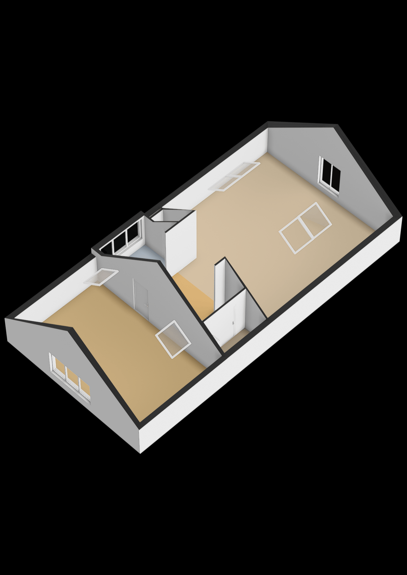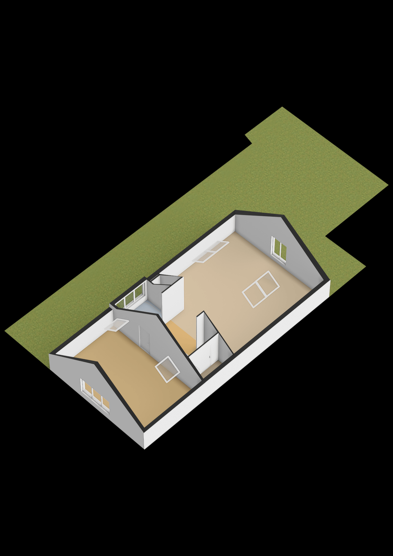 De verdieping laat zien wat hier mogelijk is: op basis van uitgewerkte 3D-visualisaties is een luxe loftstijl voorstel uitgewerkt met zichtbare houten spanten, dakramen voor daglicht, een open living met zithoek en eethoek, moderne keuken en een ruime slaapkamer met en suite badkamer. Alles in natuurlijke tinten, met warme materialen en slimme indeling. Of je het nu zelf gaat realiseren of laat uitvoeren, de inspiratie ligt er al.