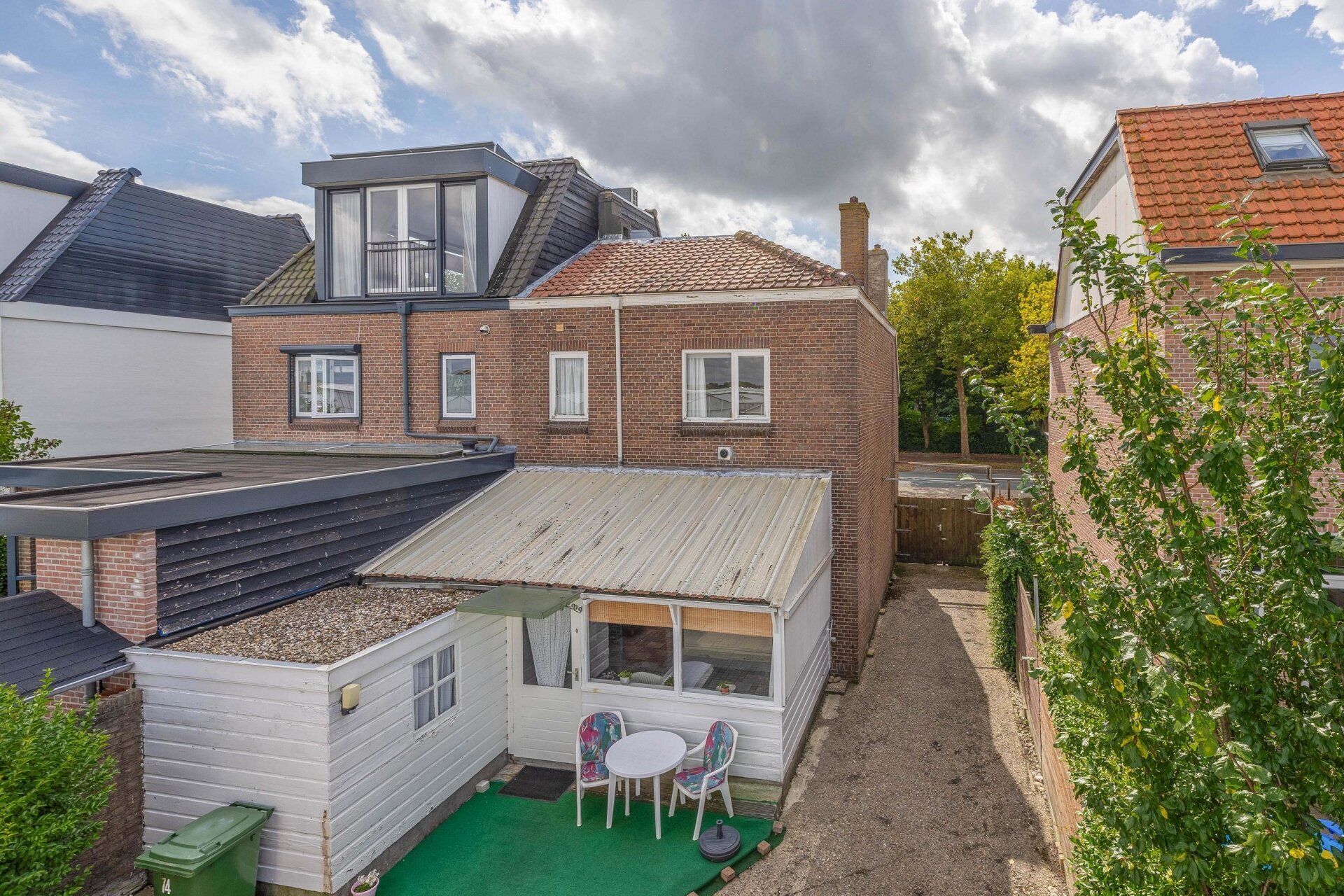 Achter het huis ligt een verzorgde achtertuin met volop mogelijkheden voor vergroening, een veranda of speelplek. Uniek is de dubbele garage aan de achterzijde met een elektrische sectionaldeur: ideaal voor wie extra opslag, een hobbyruimte of een werkplaats zoekt. De beide garages zijn bereikbaar via de zijkant van de woning aan de achterzijde van het perceel, waardoor je ook qua parkeren en bereikbaarheid goed zit.