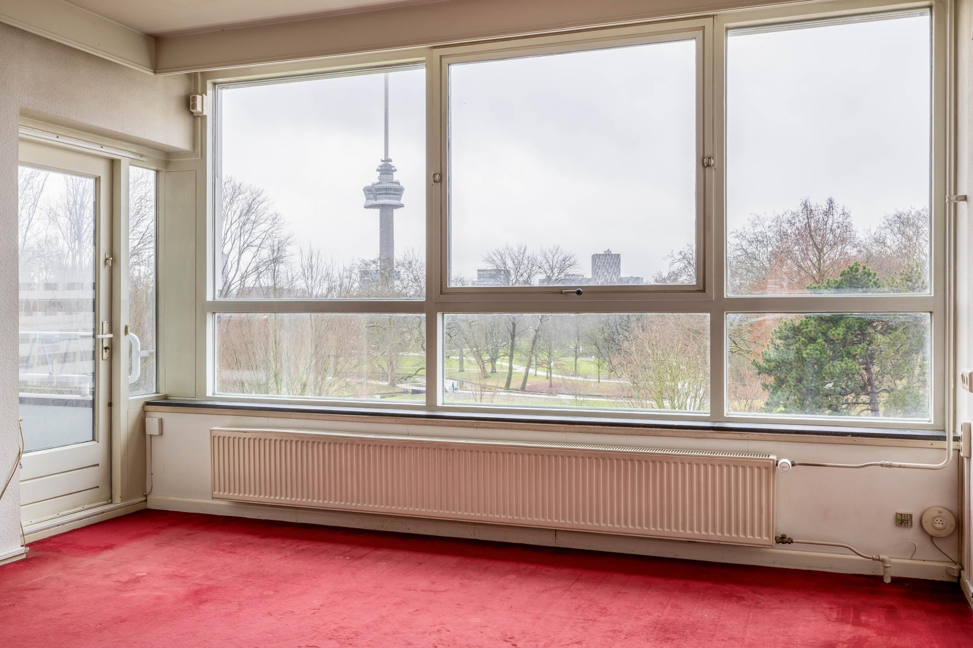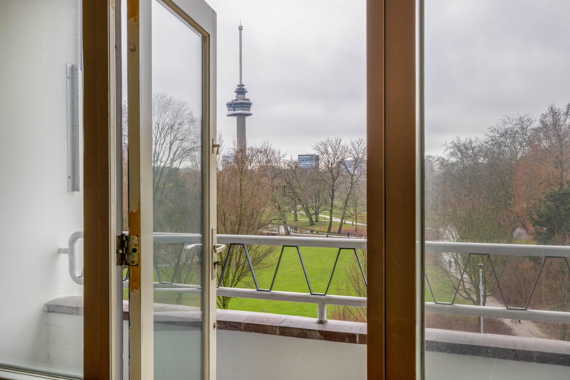 Wonen met vrij uitzicht over Het Park richting de Euromast: dat is elke dag thuiskomen met een ansichtkaart als decor. Dit appartement op de derde verdieping van een markant wederopbouwcomplex aan de Westzeedijk biedt precies dat. Een gemeentelijk monument uit 1958, gebouwd in de periode waarin Rotterdam zichzelf opnieuw uitvond. Karakter, ruimte en licht gaan hier hand in hand.