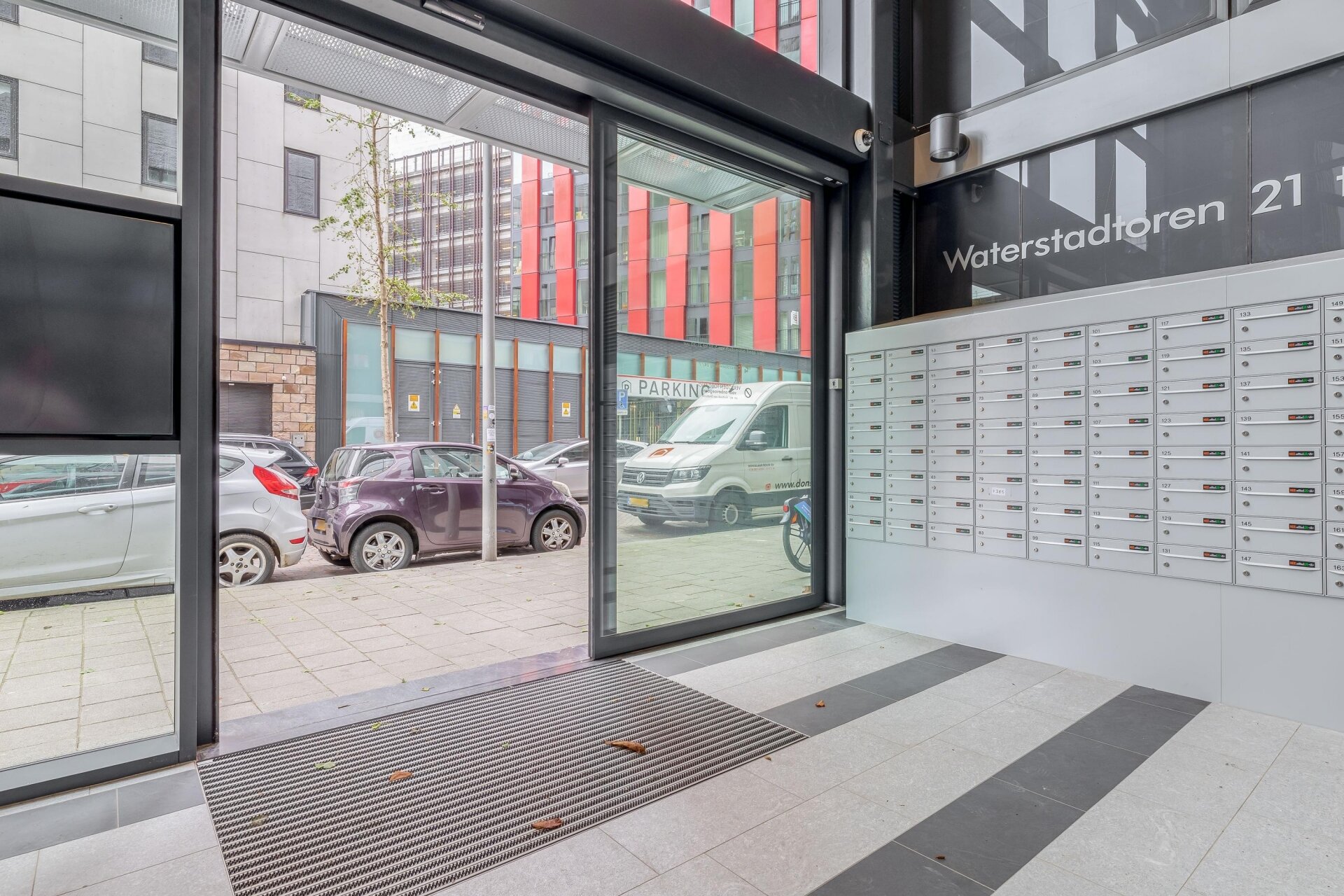 Het penthouse maakt deel uit van de Waterstadtoren: een luxe en goed onderhouden appartementencomplex in het Maritiem District. Dit deel van Rotterdam is bijzonder geliefd door de combinatie van moderne architectuur, water, rust én directe nabijheid van de stad. Je loopt zo naar de Markthal, de Oude Haven of het centrum voor een diner, drankje of dagelijkse boodschappen. OV, uitvalswegen, winkels en cultuur liggen letterlijk aan je voeten.