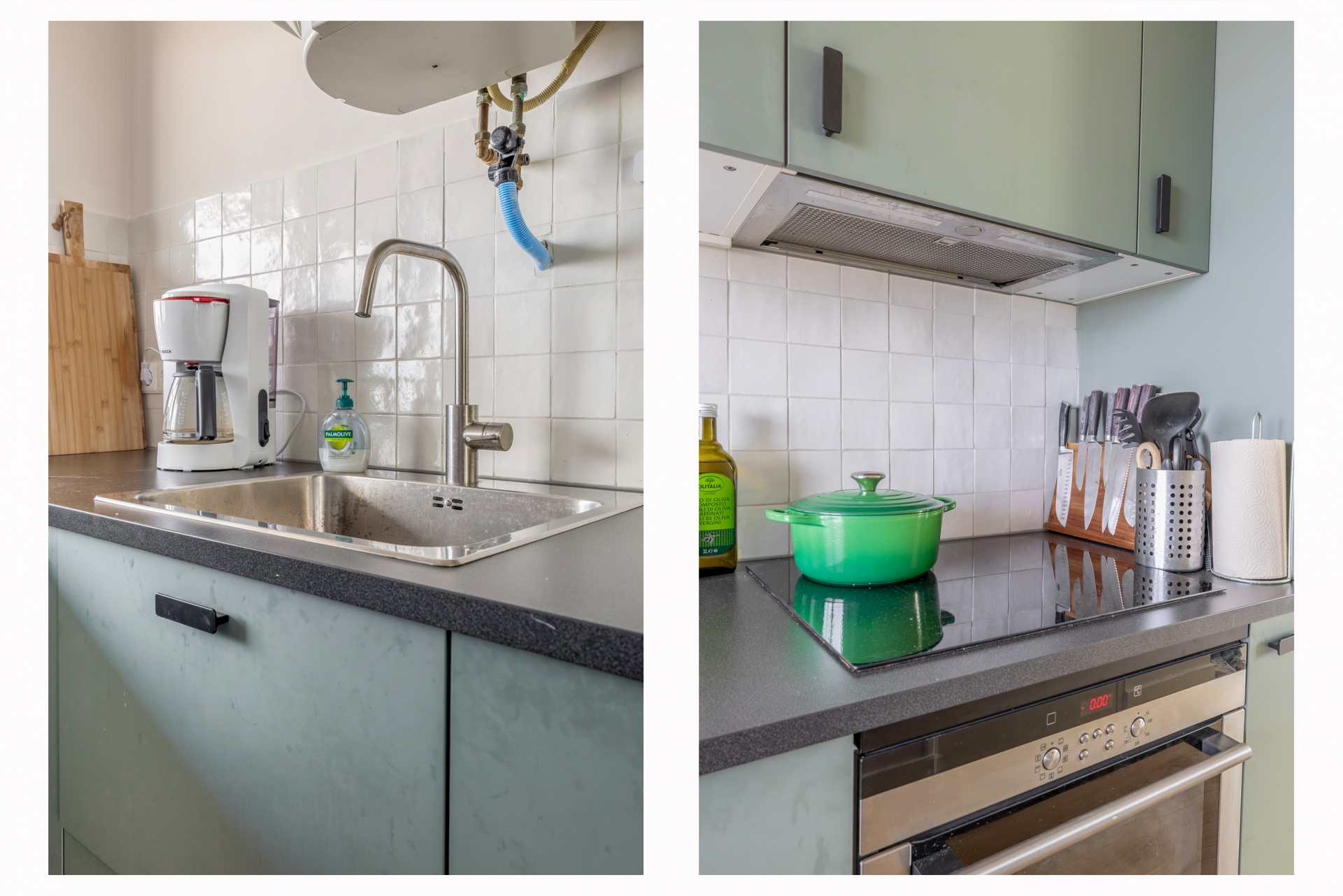 Aangrenzend vind je de semi-afgesloten keuken, uitgevoerd in een stijlvolle kleur, wederom met prachtig uitzicht. Hier kook je met plezier terwijl je over Rotterdam uitkijkt.