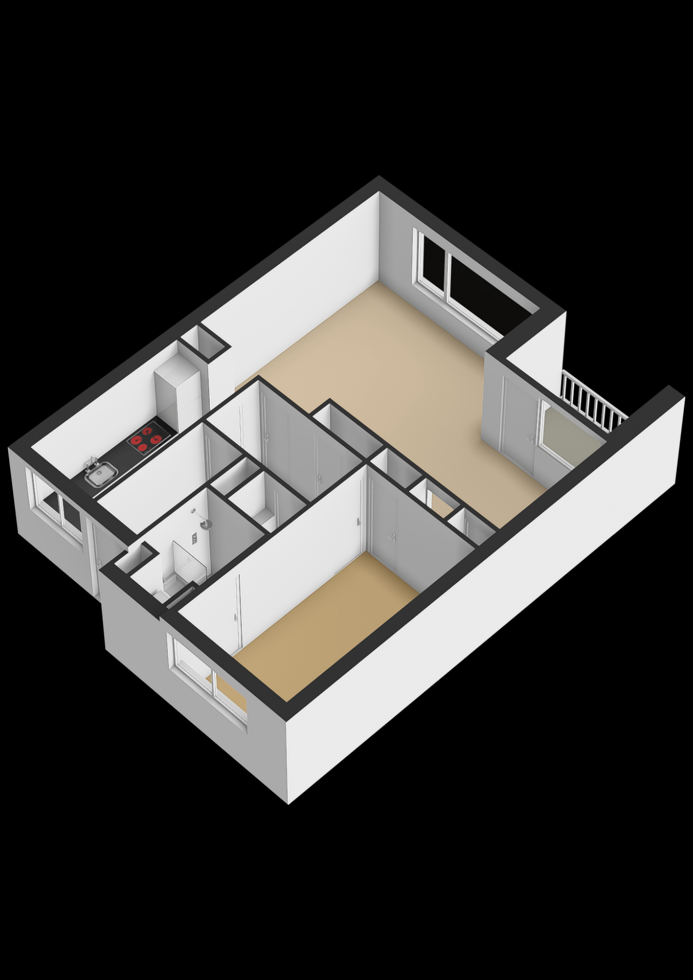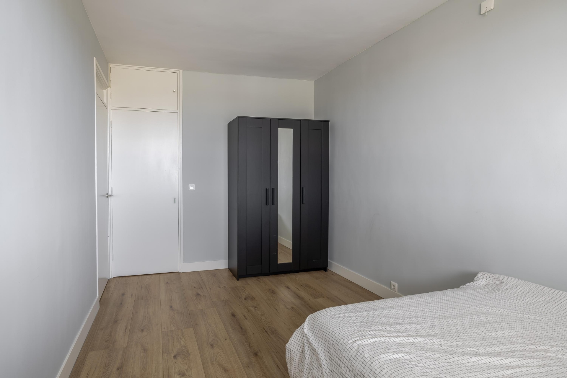 Het appartement beschikt over één ruime slaapkamer met voldoende plek voor een groot bed en kastruimte. Daarnaast is er een aparte hoek die als bijvoorbeeld een werkruimte kan worden gebruikt, maar ook mogelijkheden biedt voor een tweede (kleine) slaapkamer of een hobbyruimte. De badkamer is modern uitgevoerd en is voorzien van een inloopdouche en wastafel. Het toilet is separaat van de douche.