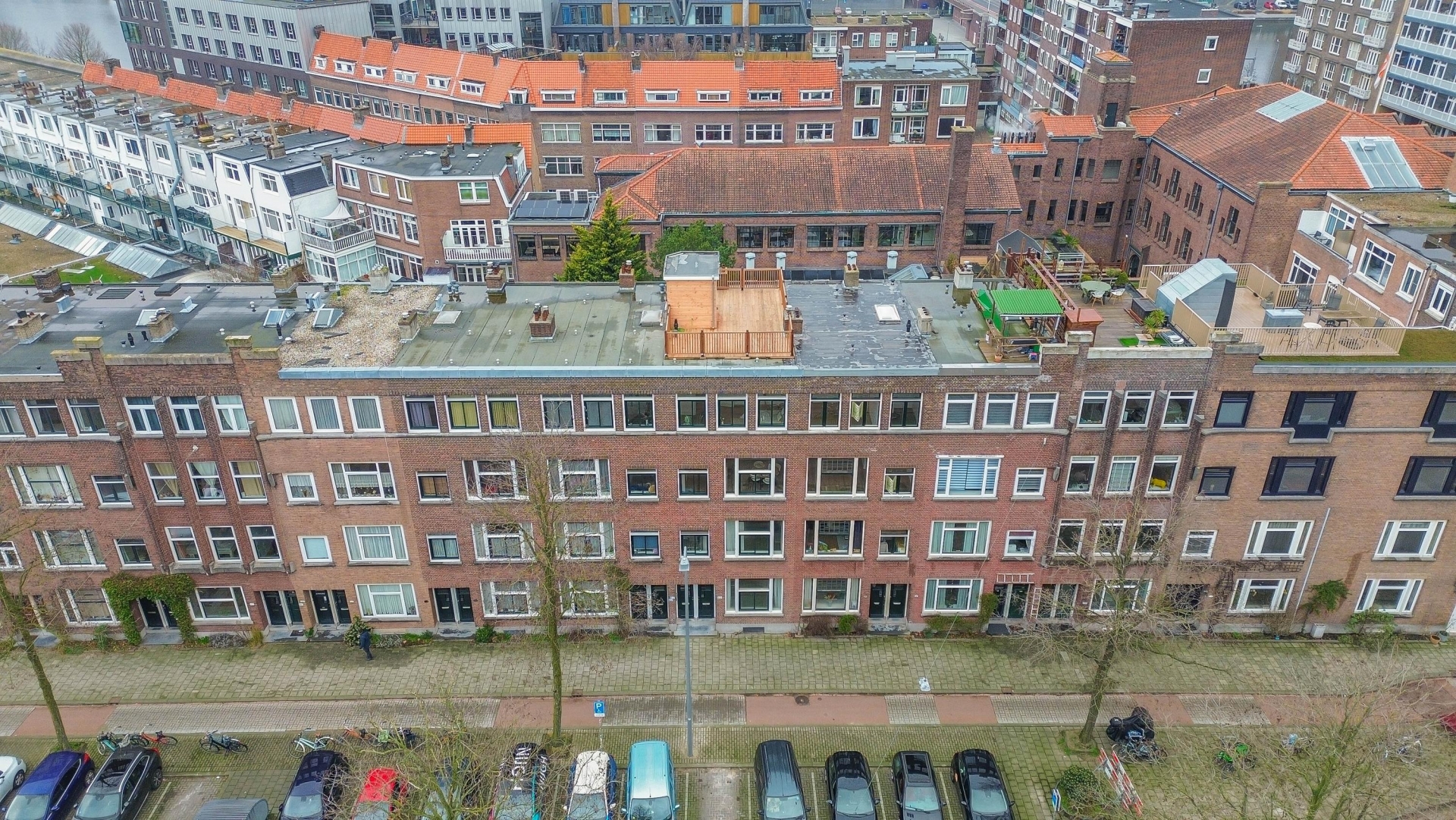 Als absoluut hoogtepunt beschikt dit appartement over een royaal dakterras op het zuiden. Een heerlijke buitenruimte waar je vanaf het vroege voorjaar tot laat in de avond van de zon kunt genieten. Of je nu kiest voor een loungeset, een grote eettafel of een combinatie van beide: hier creëer je moeiteloos je eigen oase midden in de stad. Het dakterras biedt verrassend veel privacy en voelt echt als een verlengstuk van de woning.