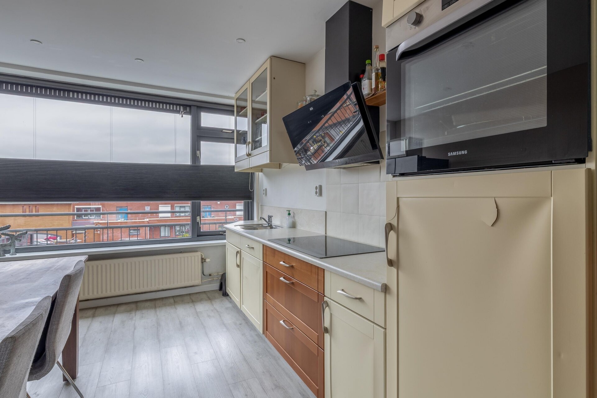 De keuken beschikt over praktische voorzieningen, waaronder een afzuigkap, koelkast en oven.