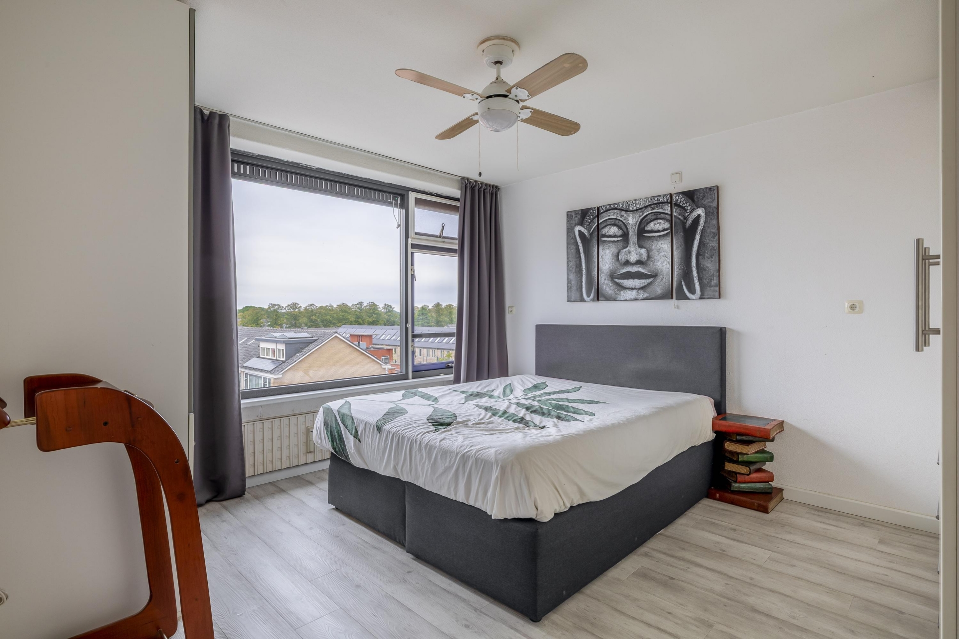Beide slaapkamers zijn ruim van formaat en bieden een prettig uitzicht op De Schoof. De rustgevende ambiance, houten kozijnen en dubbele beglazing dragen bij aan optimaal comfort en privacy.