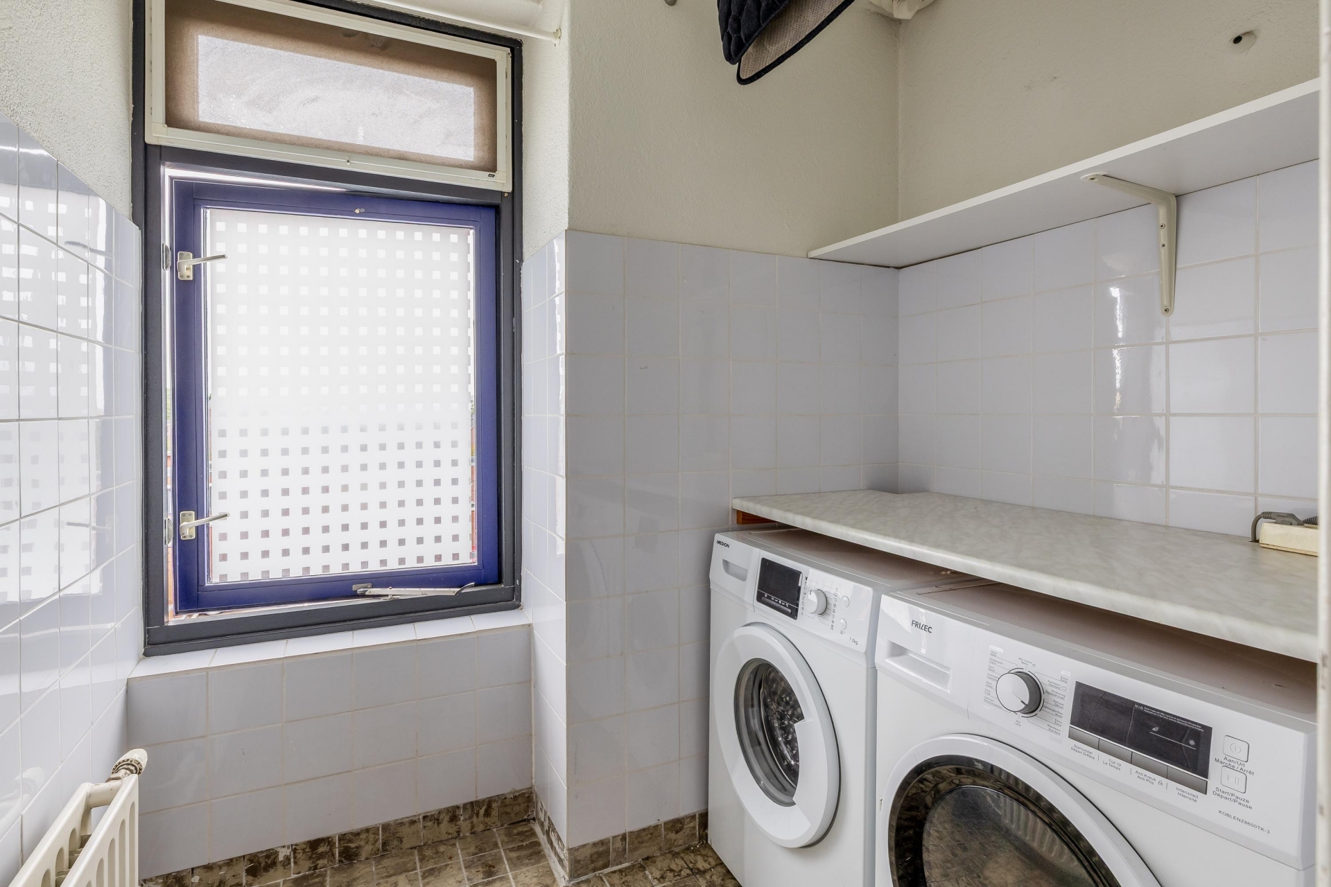 Een praktische en nette ruimte voor uw wasmachine, droger en extra opbergruimte—ideaal voor een opgeruimd huishouden.