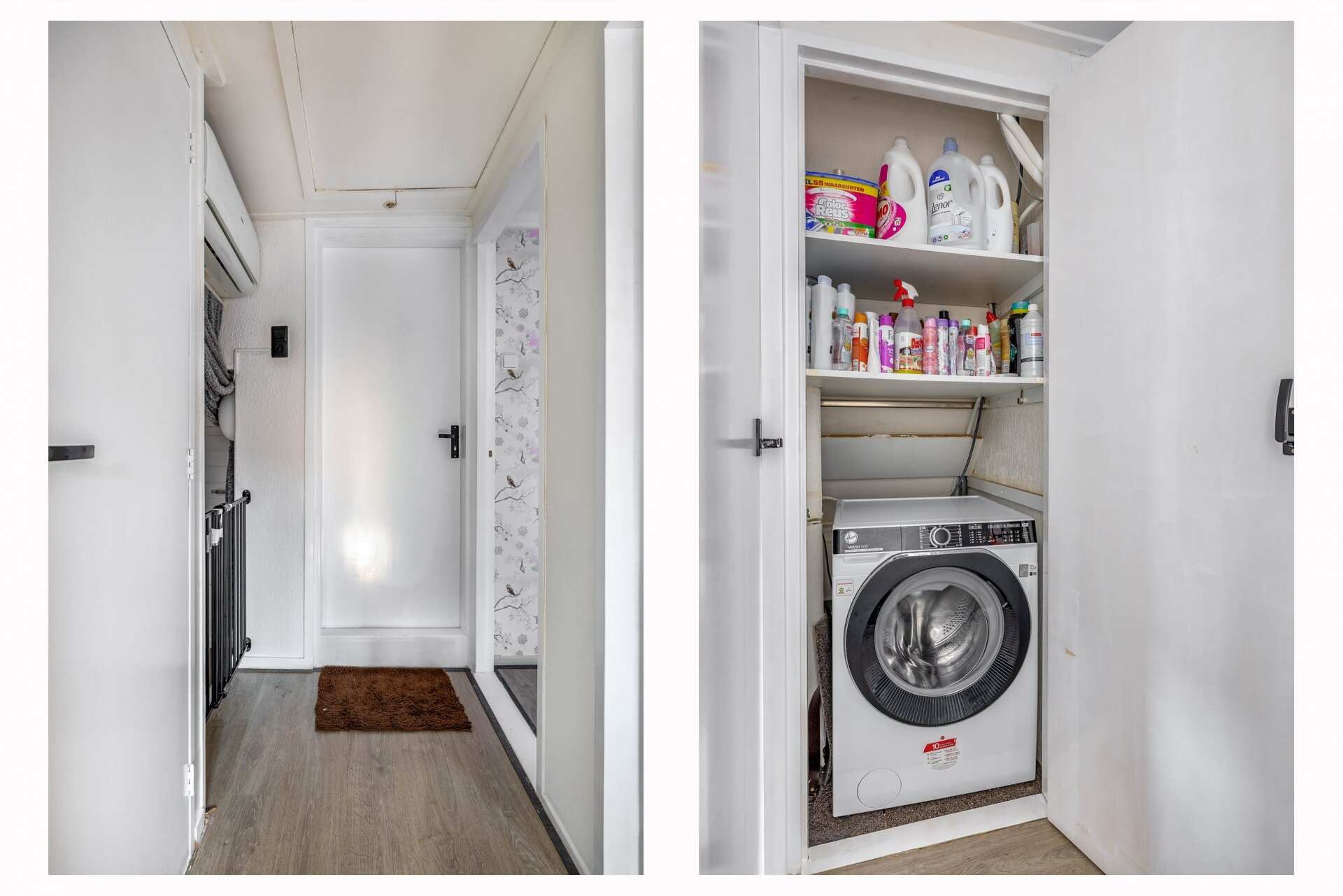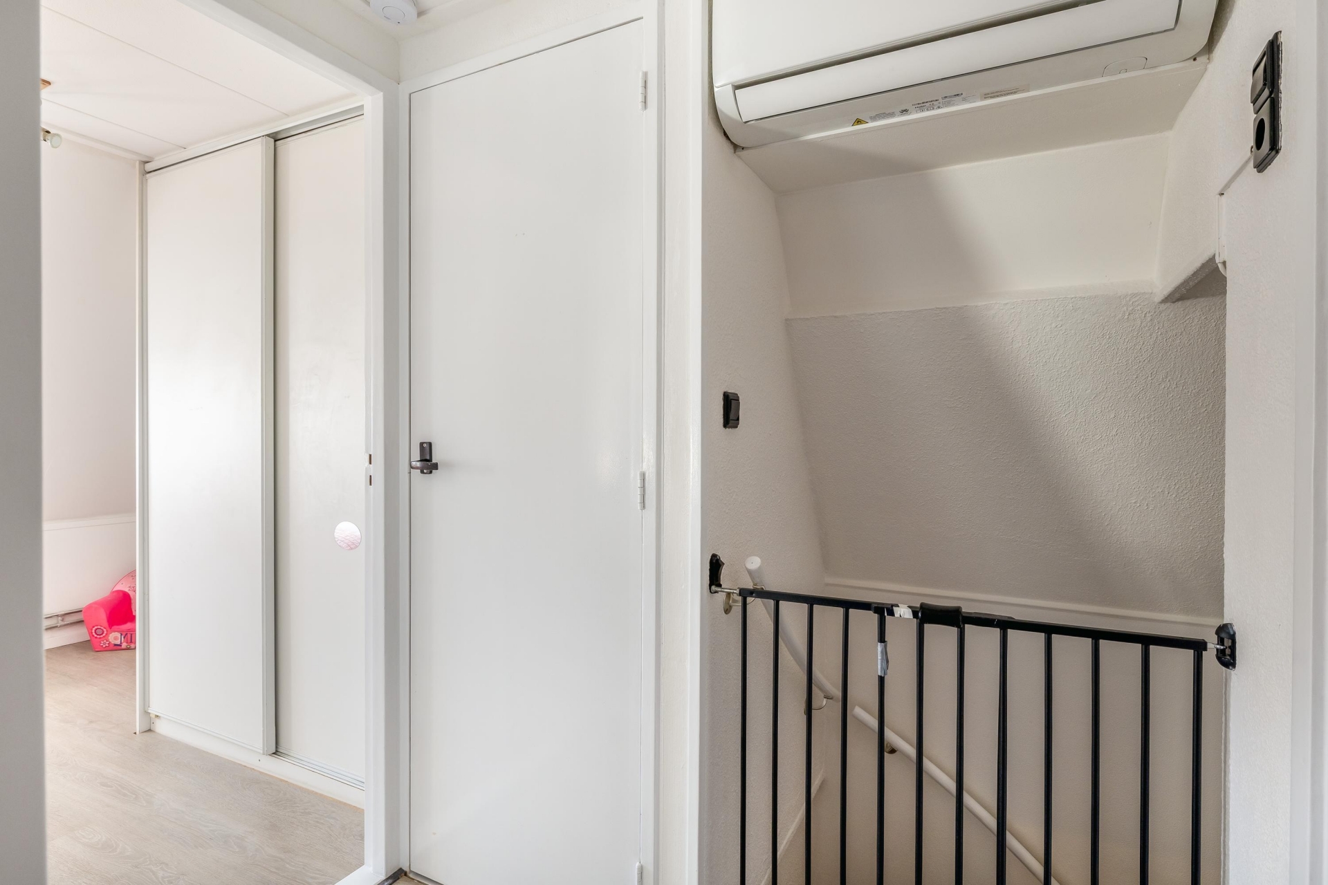 1e verdieping Hier tref je een ruime overloop, twee royale slaapkamers, een praktische inloopkast / 3e slaapkamer en een nette badkamer met douchecabine, wastafelmeubel en een tweede toilet met hangend closet. Op de eerste etage is ook een airco geïnstalleerd.