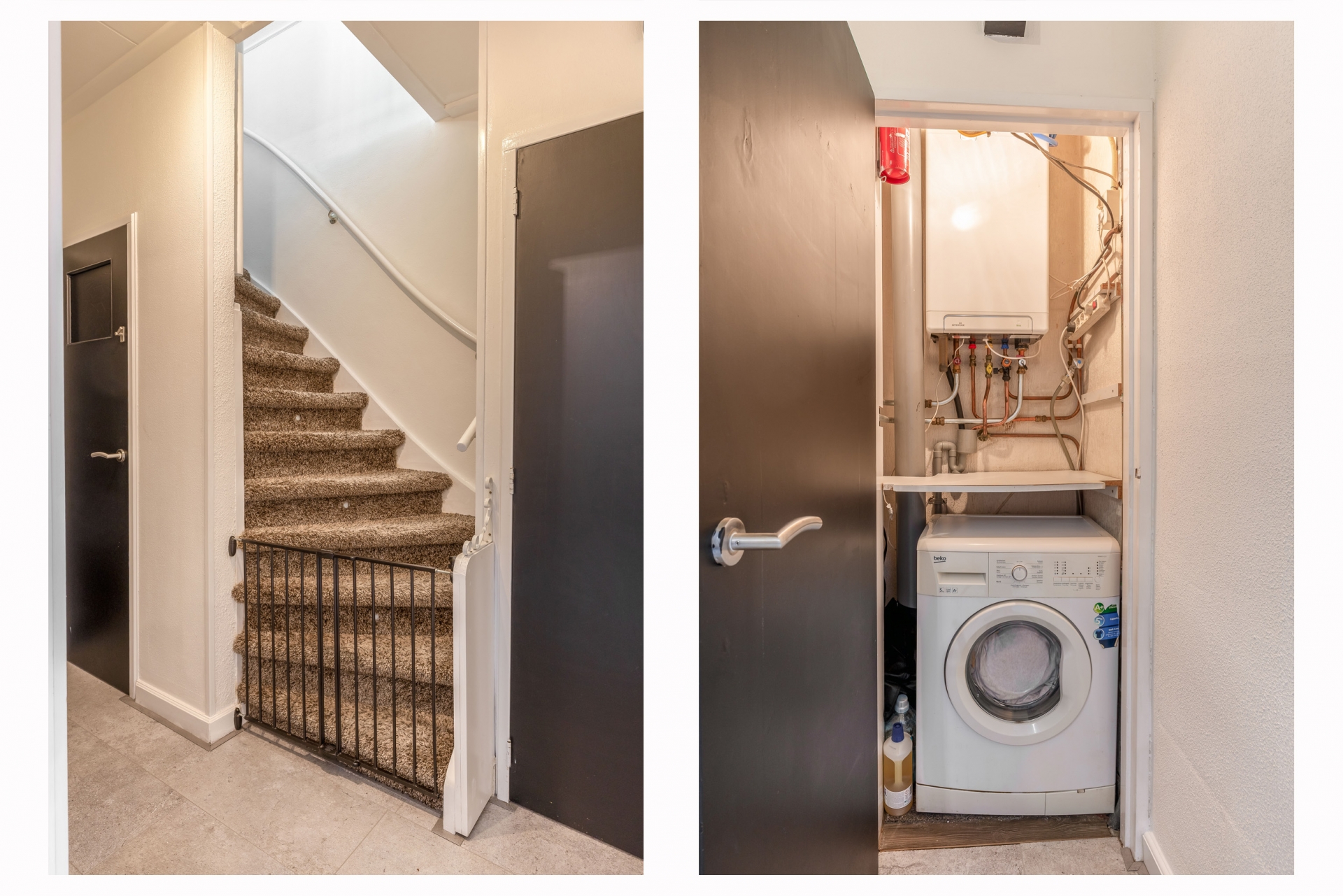 In de tussenhal is het toilet gesitueerd en via de trap bereik je de eerste verdieping.