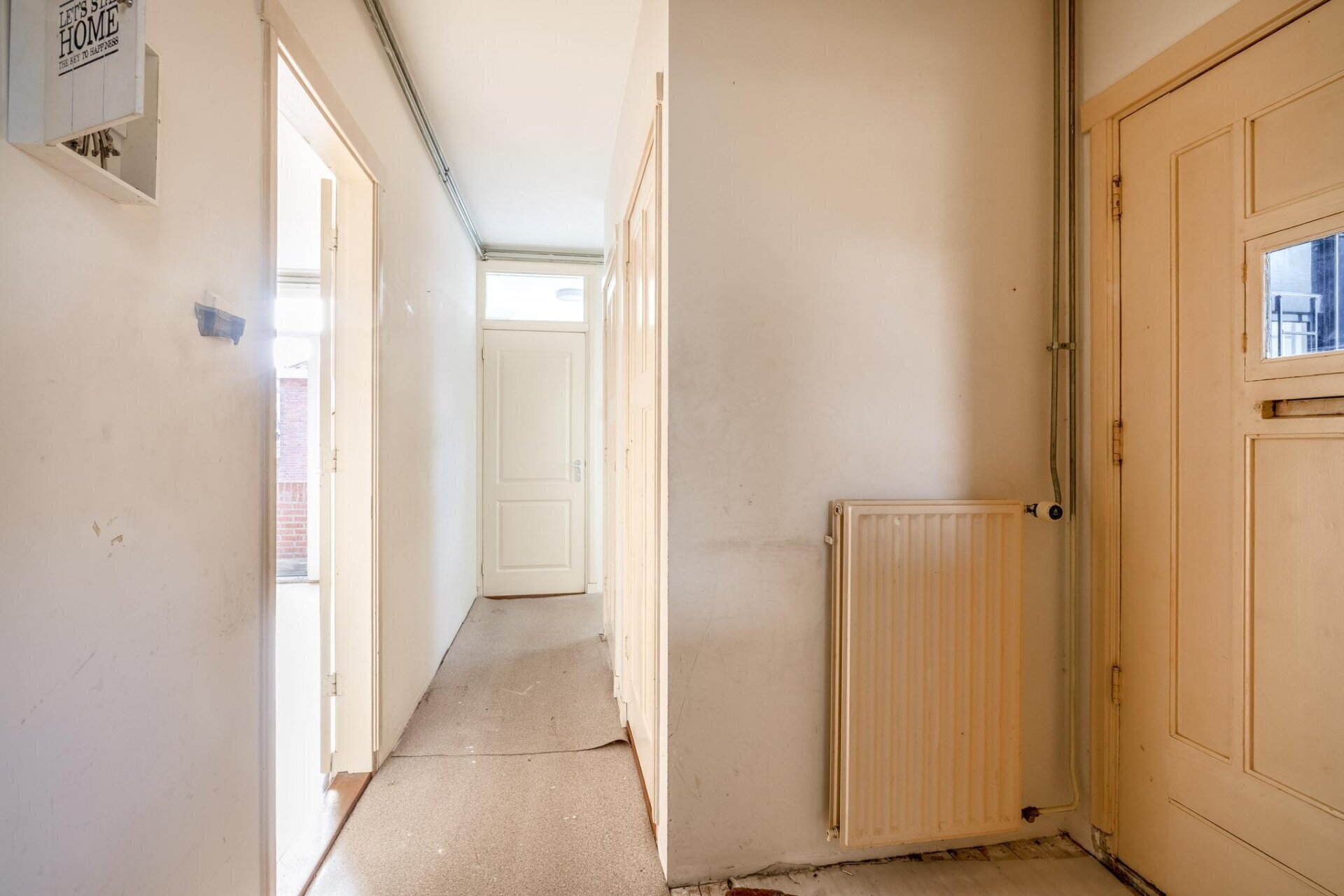 Open portiek met trap naar de eerste etage; entree van de woning middels hal met vaste kast en meterkast; toilet; woonkamer met suiteseparatie en 2 vaste kasten; slaapkamer met vaste kast en toegang tot het achterbalkon; keuken met koel-/vriescombinatie, gaskookplaat, oven, afzuigkap, wasmachine-aansluiting en opstelplaats c.v.-ketel; badkamer met wastafel en douche.