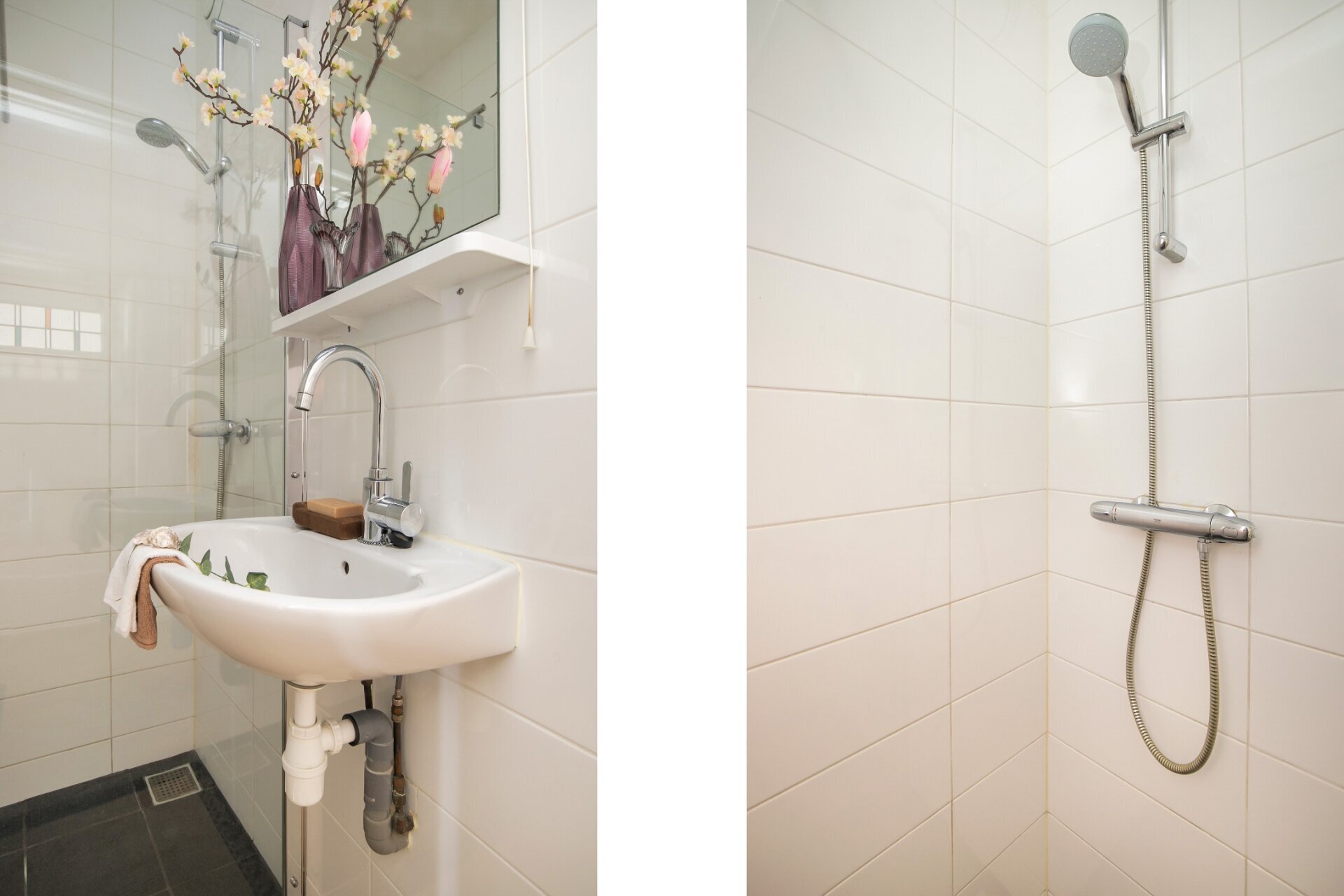 Het ruime balkon ligt op het noorden en biedt een fijne plek om buiten te zitten. Door de ligging aan de achterzijde van het pand geniet je hier van rust en privacy, terwijl de levendigheid van de stad slechts één deur verder is. Een perfecte plek voor een kop koffie in de ochtend of een ontspannen borrel aan het einde van de dag.