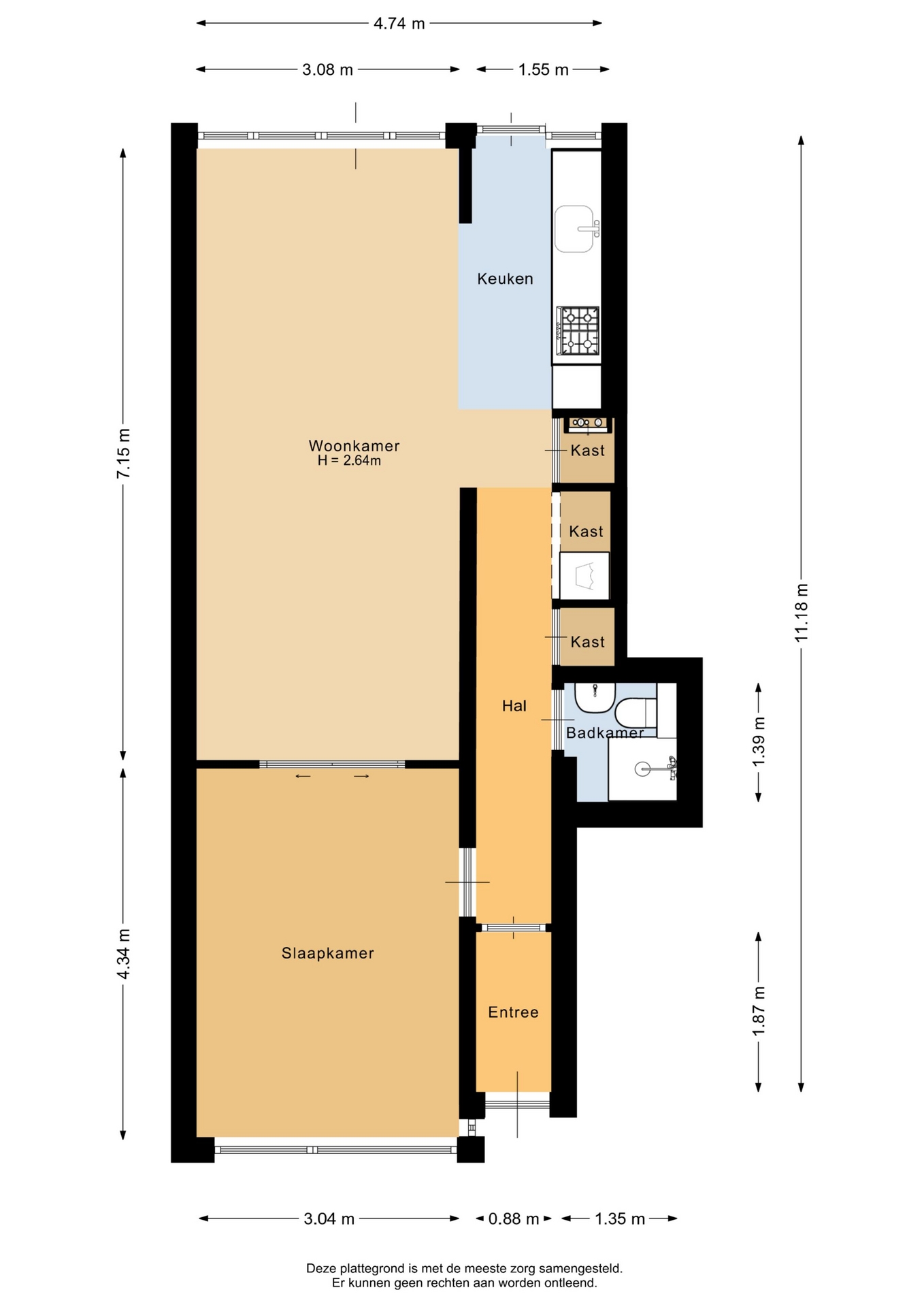 “Deze informatie is door ons met de nodige zorgvuldigheid samengesteld. Onzerzijds wordt echter geen enkele aansprakelijkheid aanvaard voor enige onvolledigheid, onjuistheid of anderszins, dan wel de gevolgen daarvan. Alle opgegeven maten en oppervlakten zijn indicatief.”