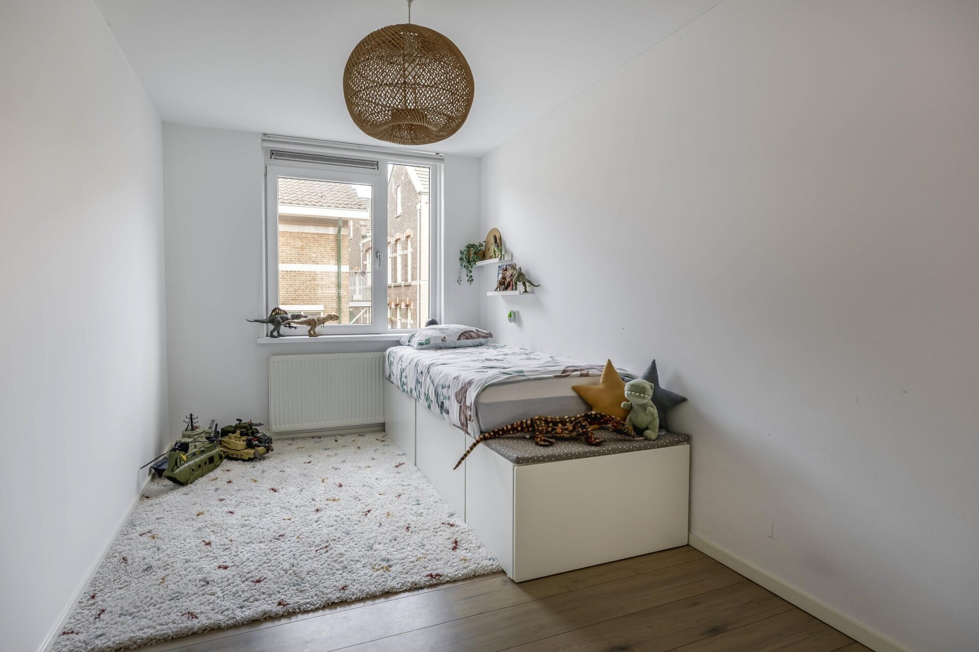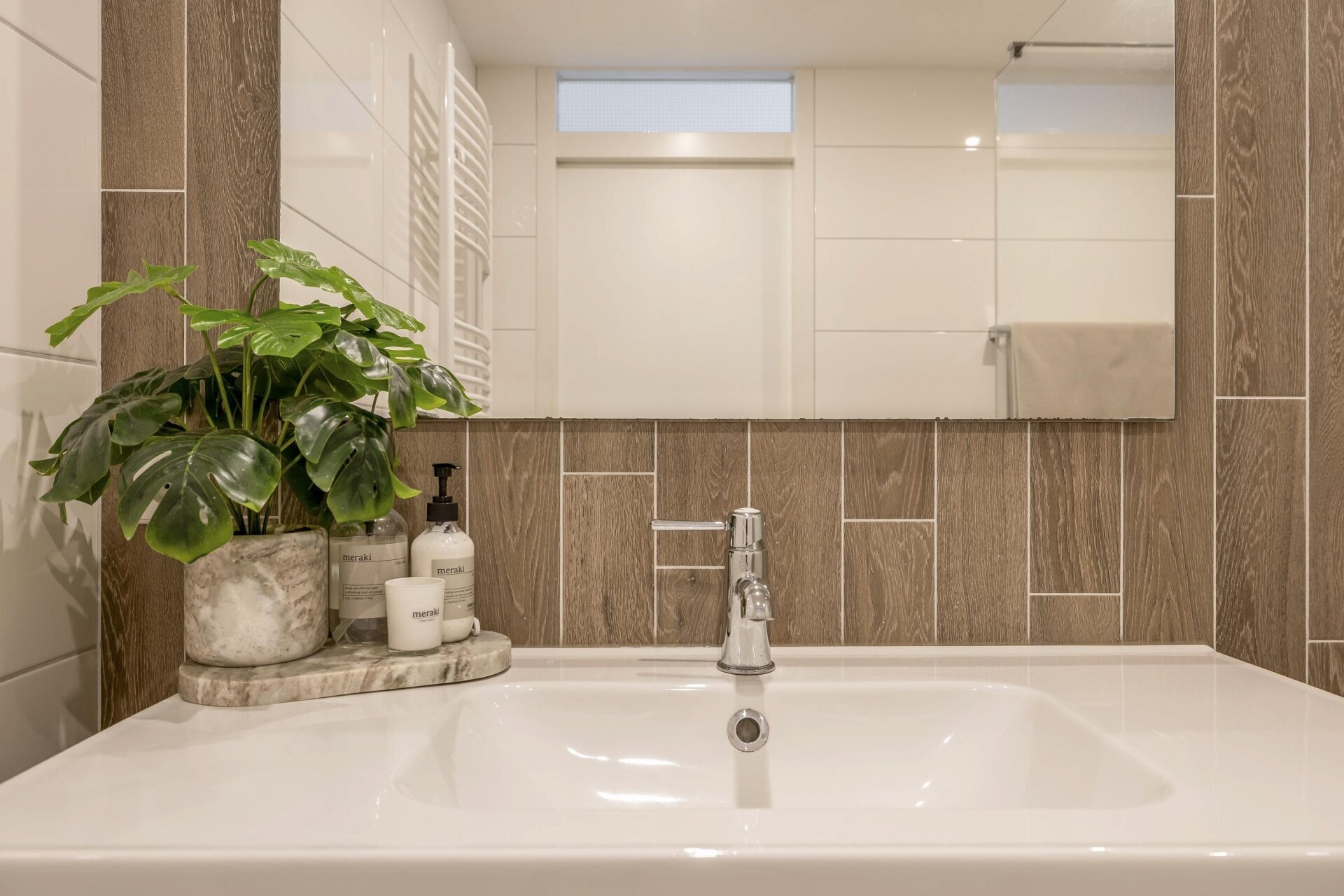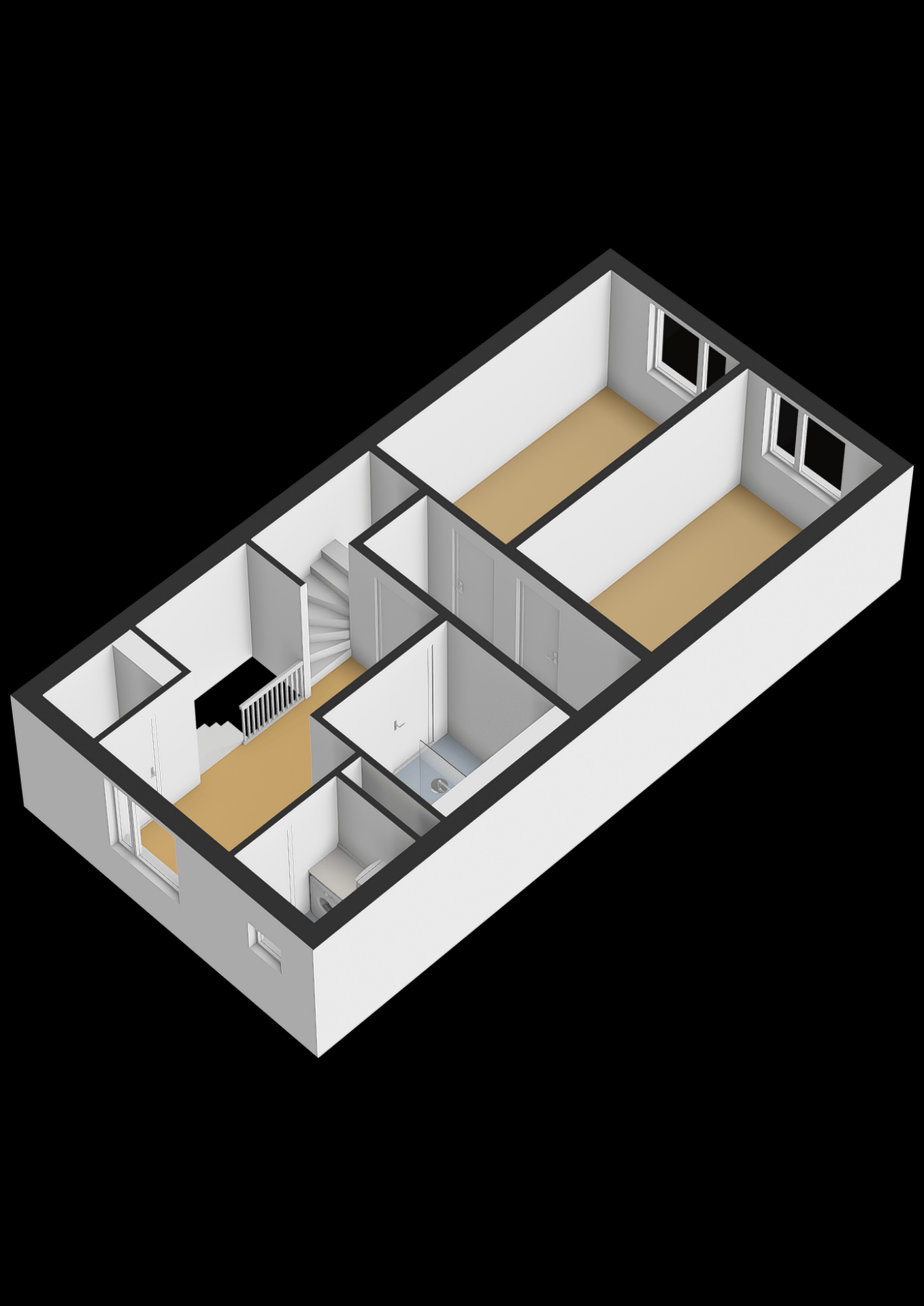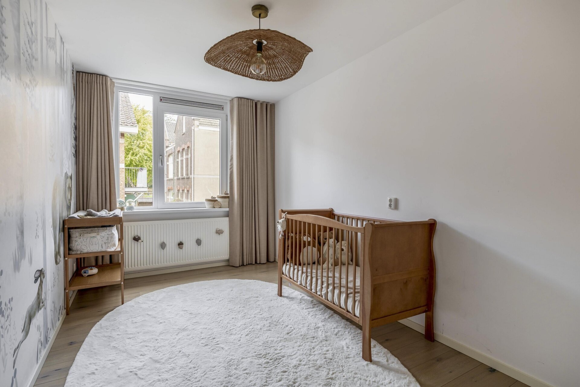 De eerste verdieping telt twee goed bemeten slaapkamers met laminaatvloeren en veel lichtinval. De badkamer is modern en uitgerust met een inloopdouche, wastafelmeubel, designradiator en luxe betegeling. Daarnaast is er een separaat tweede toilet en een aparte ruimte voor de wasmachine en cv-installatie.