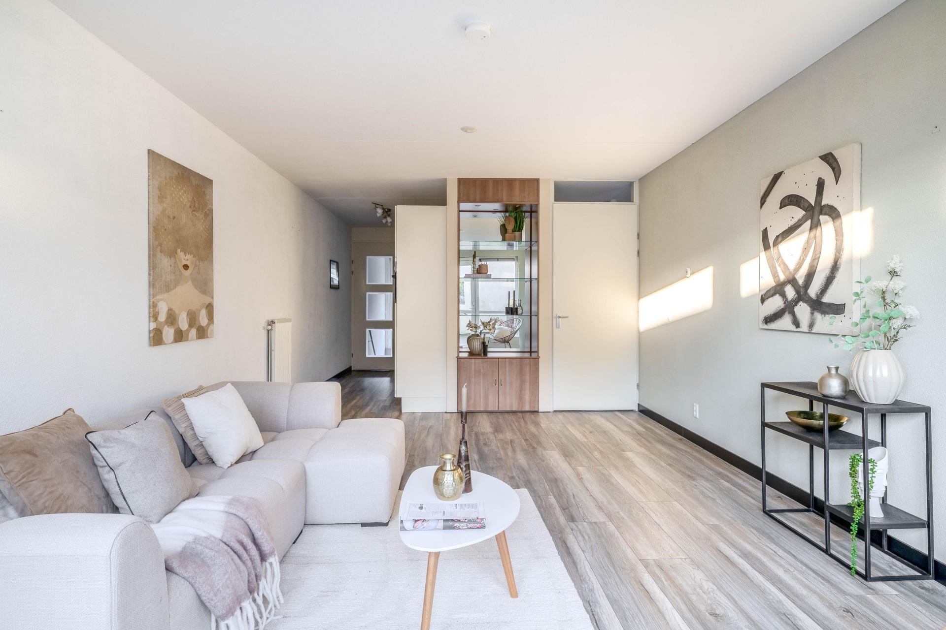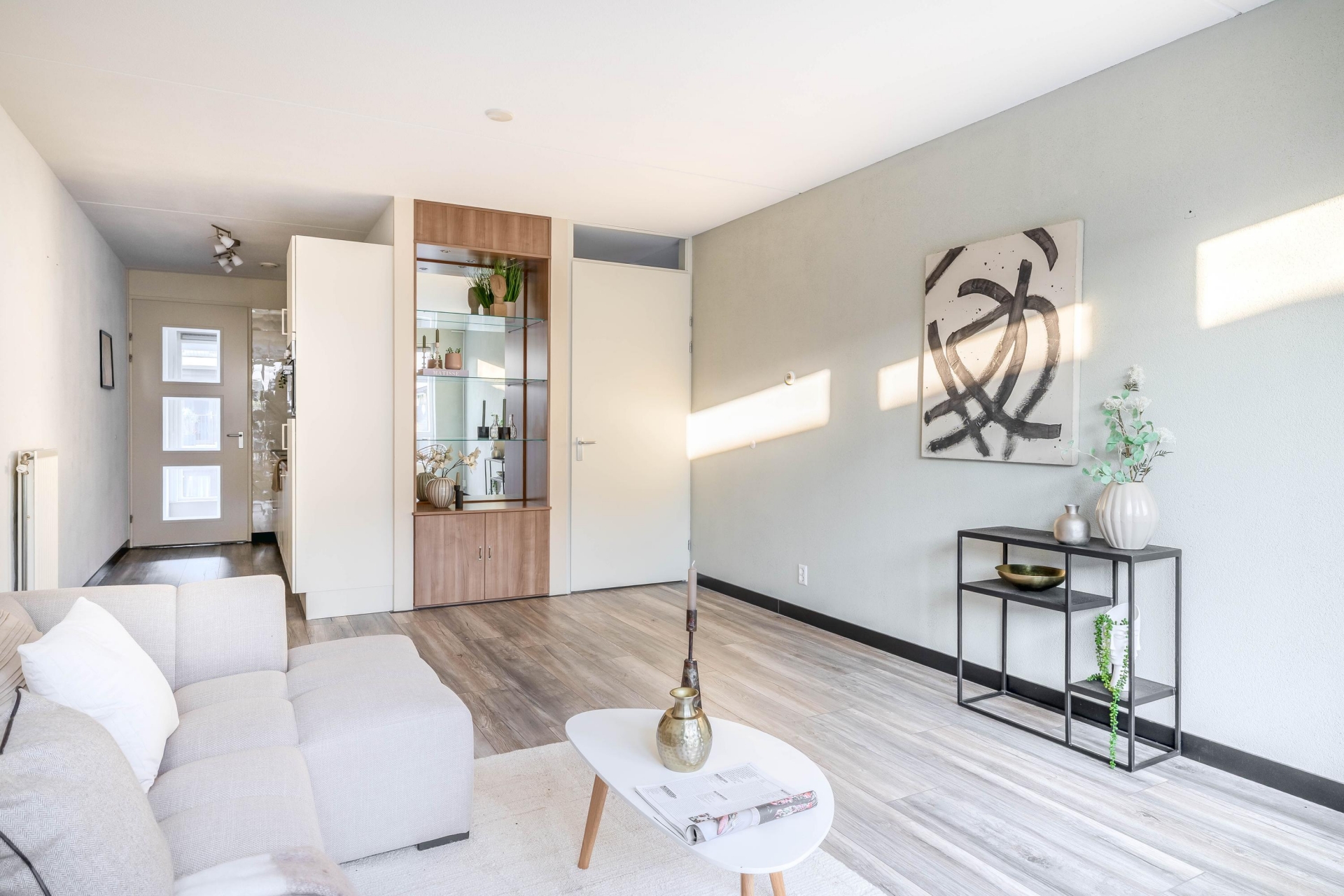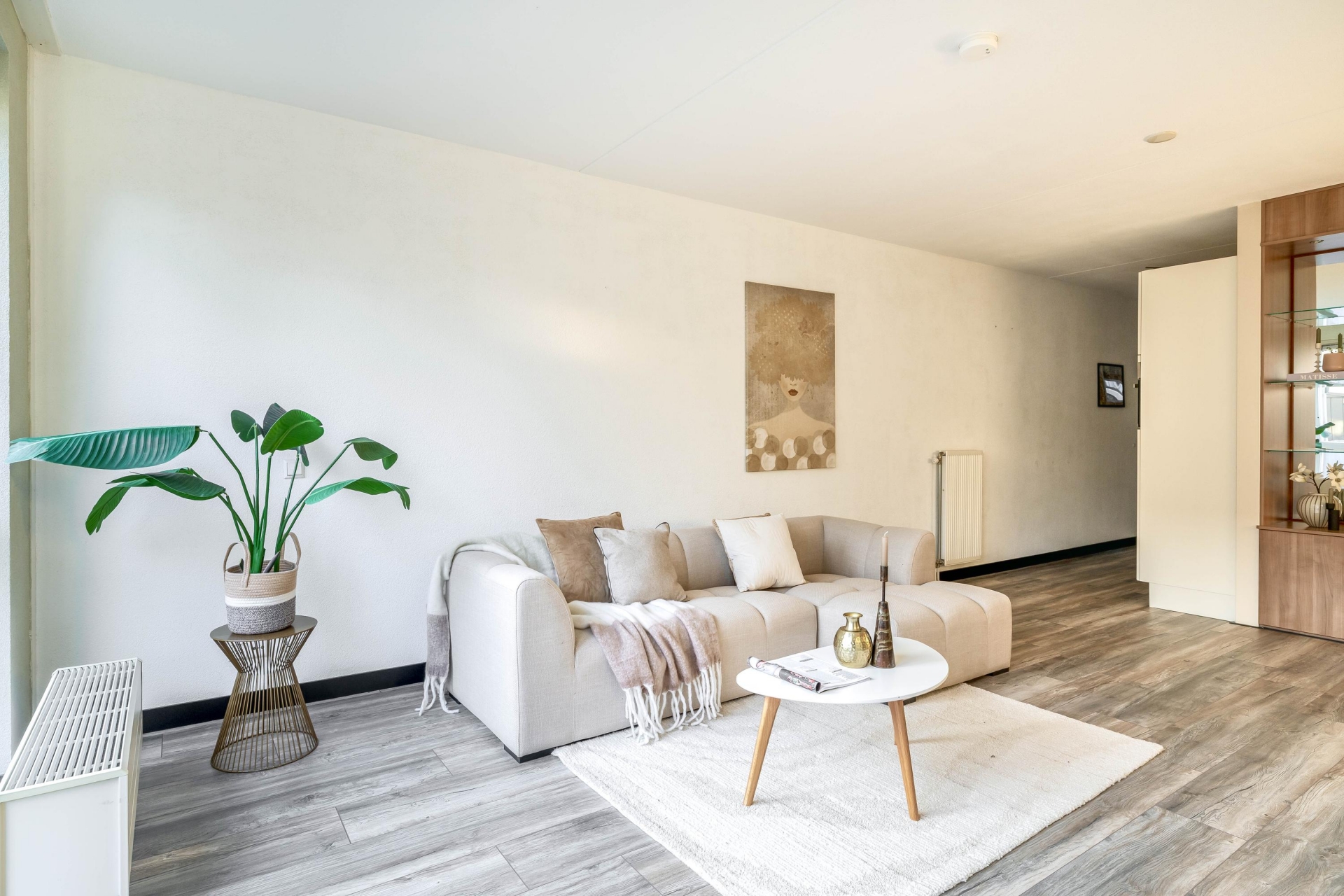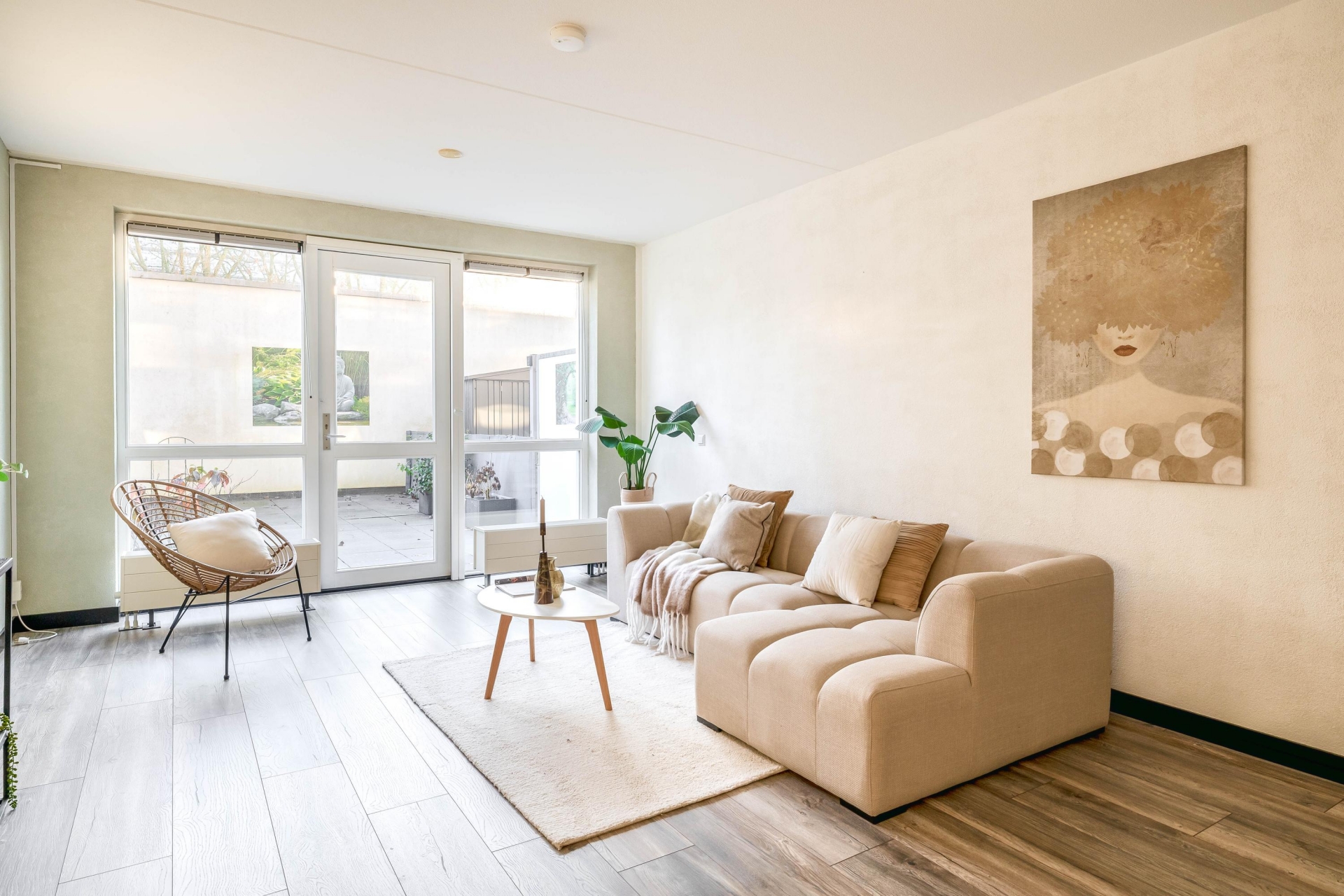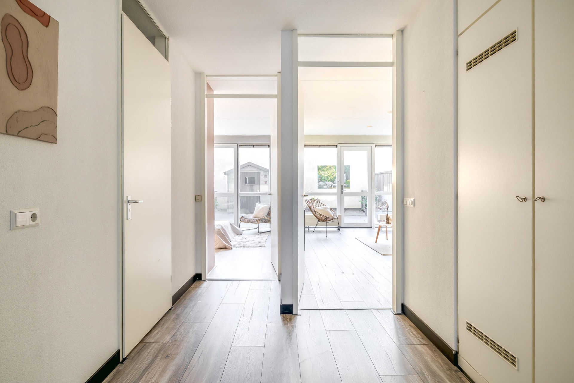De woonverdieping bevindt zich op de eerste etage, en wat direct opvalt, is de fijne lichtinval door de grote raampartijen aan de achterzijde. De ruime woonkamer staat via een schuifpui in directe verbinding met het riante zonneterras. Deze buitenruimte is een verlengstuk van je leefruimte: hier geniet je in de ochtend van je koffie in de zon of sluit je de dag af met een goed glas wijn in alle rust.