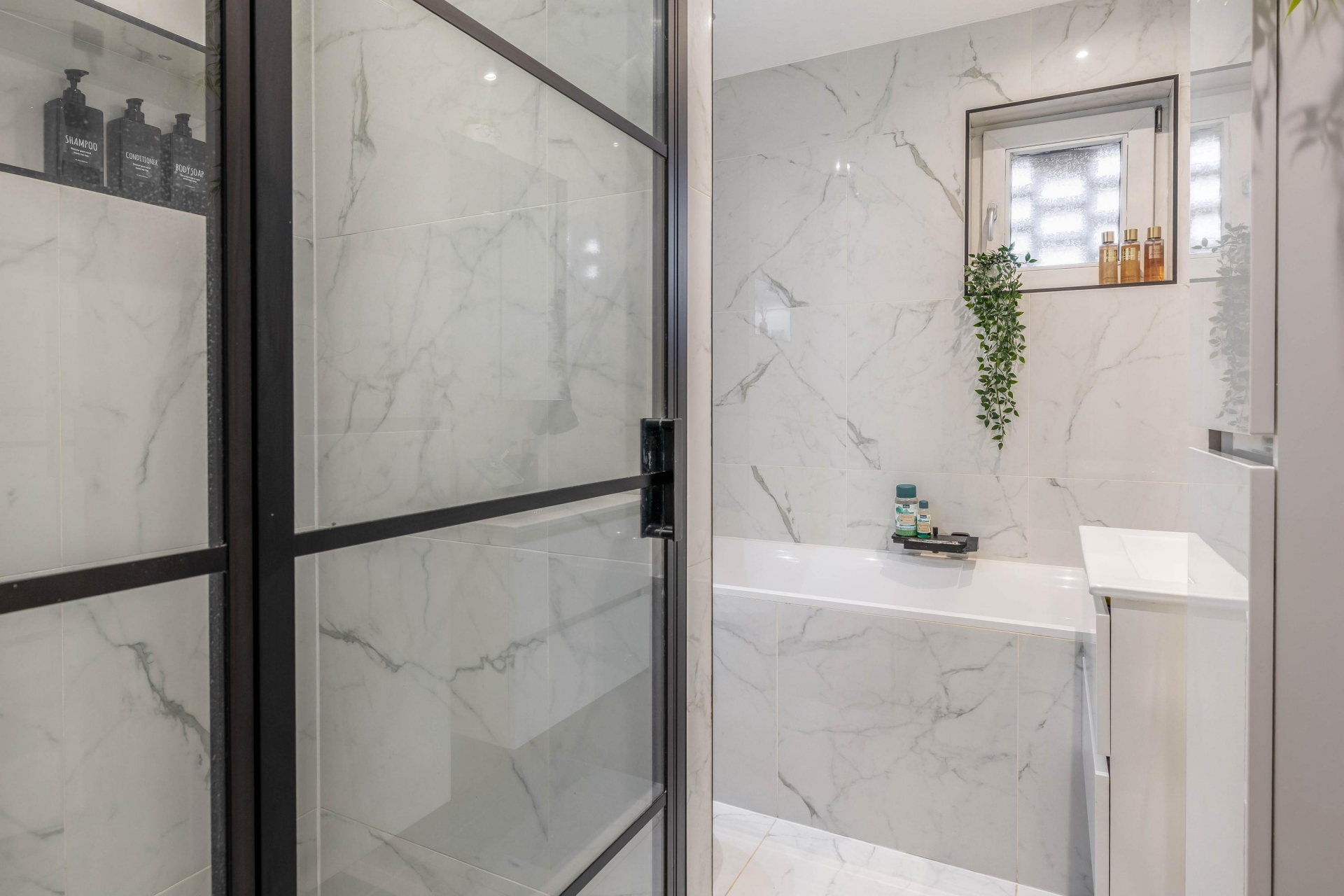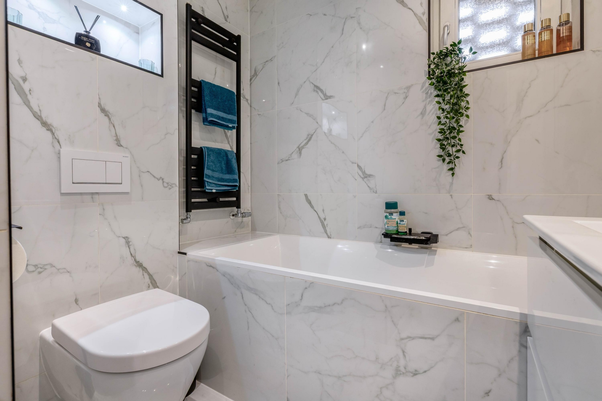 Op de tweede verdieping zijn er drie slaapkamers, waarvan twee aan de achterzijde. De volledig betegelde badkamer beschikt over een douche, toilet, wastafelmeubel, designradiator en een ligbad.