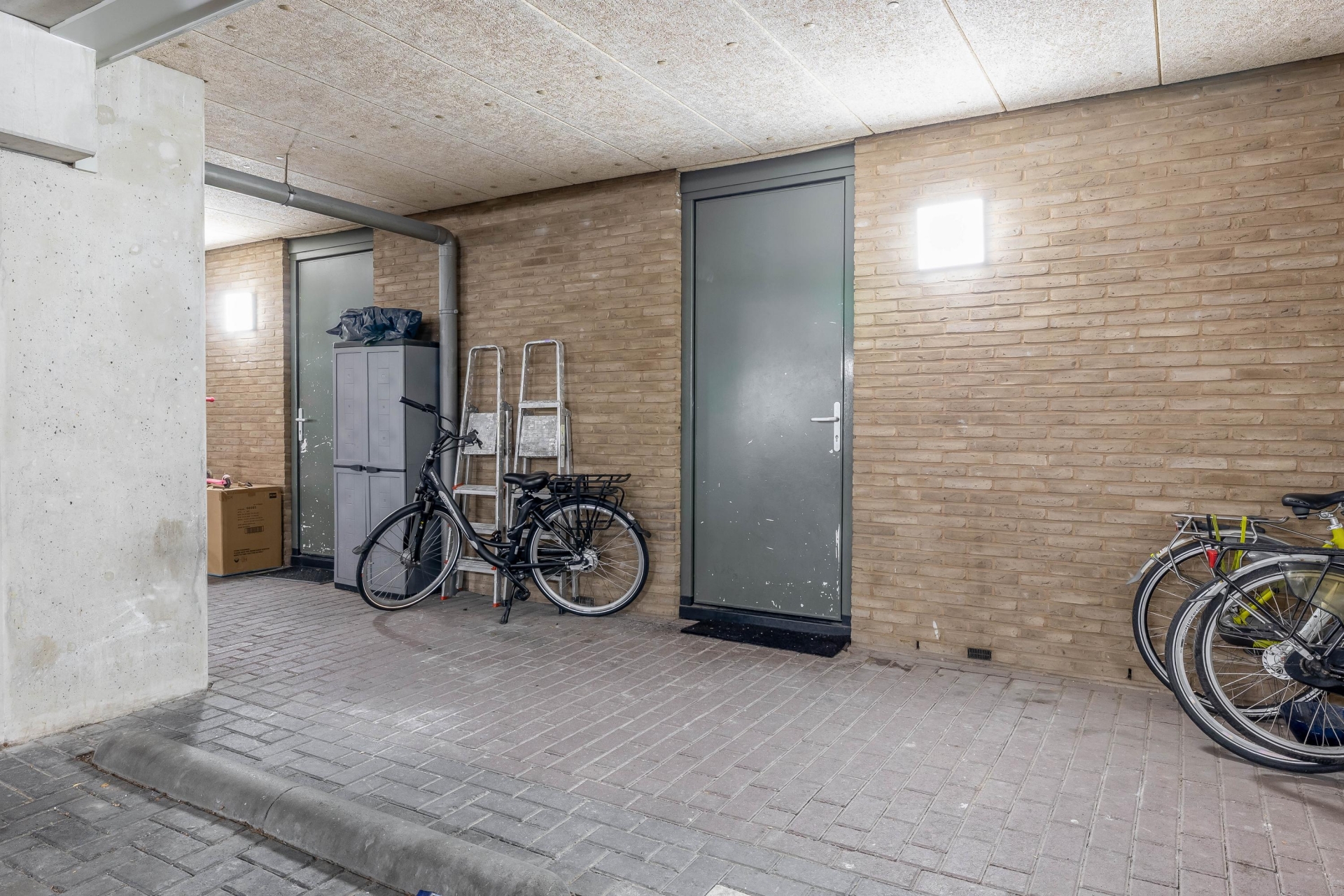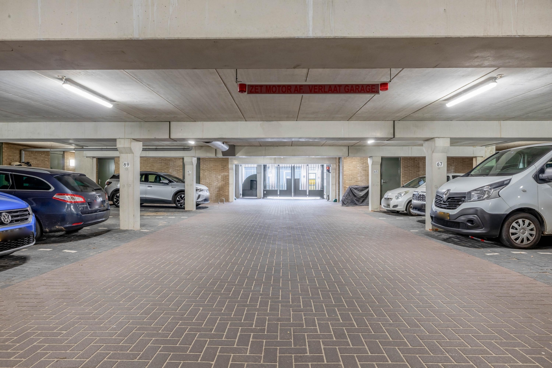 - Een parkeerplaats in de afgesloten parkeergarage. De toegangspoort wordt op afstand elektrisch bediend