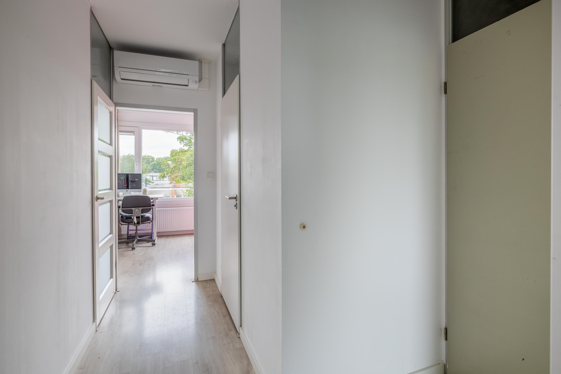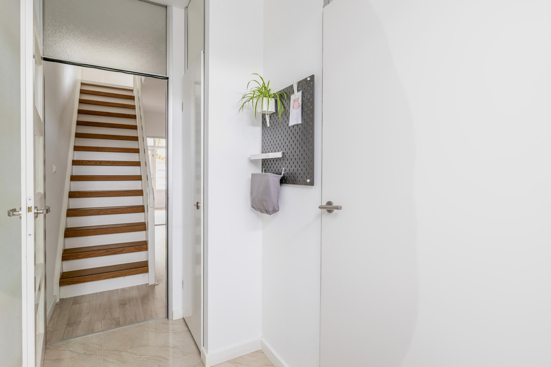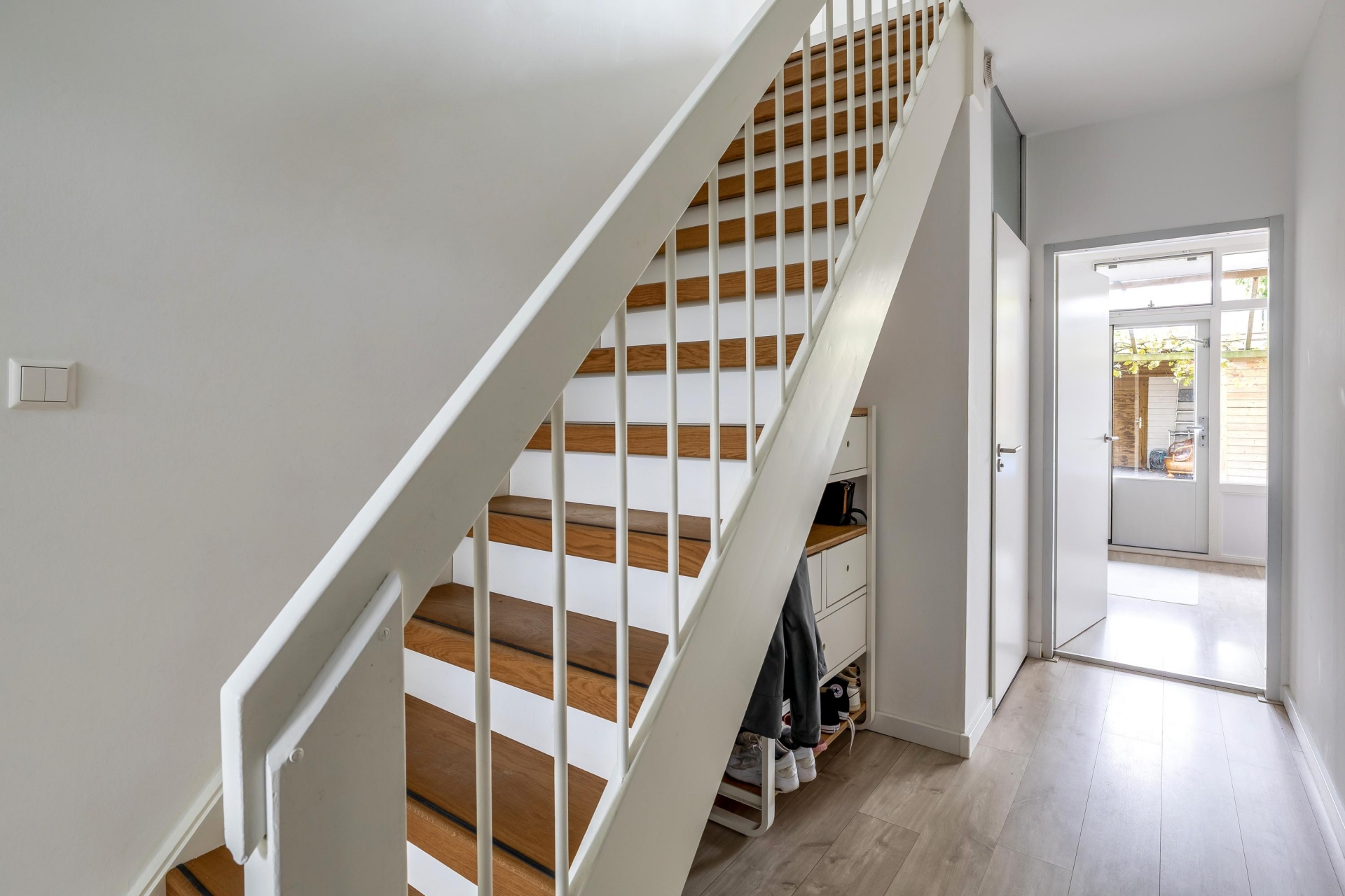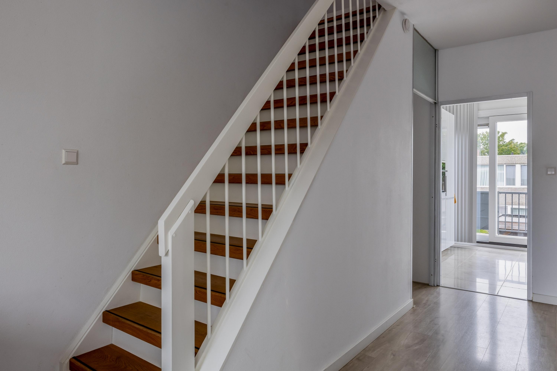 De woning is verdeeld over drie woonlagen. Op de begane grond vind je de entree, een praktische inpandige garage en een ruime (slaap)kamer met toegang tot de tuin. Deze kamer is multifunctioneel in te richten als slaapkamer, kantoor, hobbyruimte of speelkamer. Vanuit hier loop je zo de zonnige achtertuin in: een fijne plek met privacy, groen en volop middag- en avondzon dankzij de westelijke ligging.