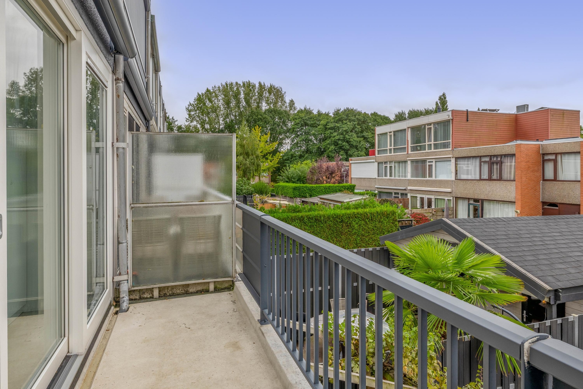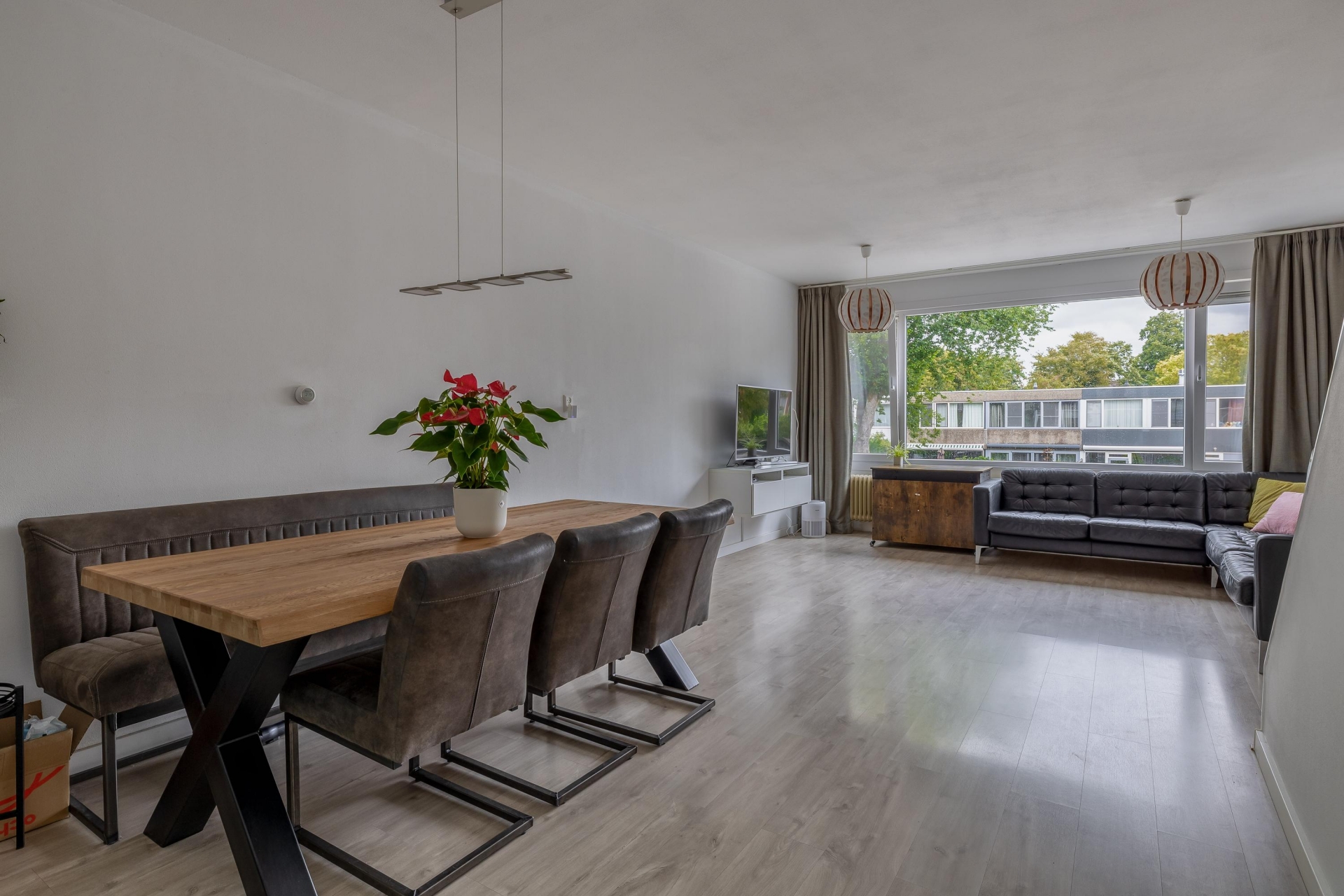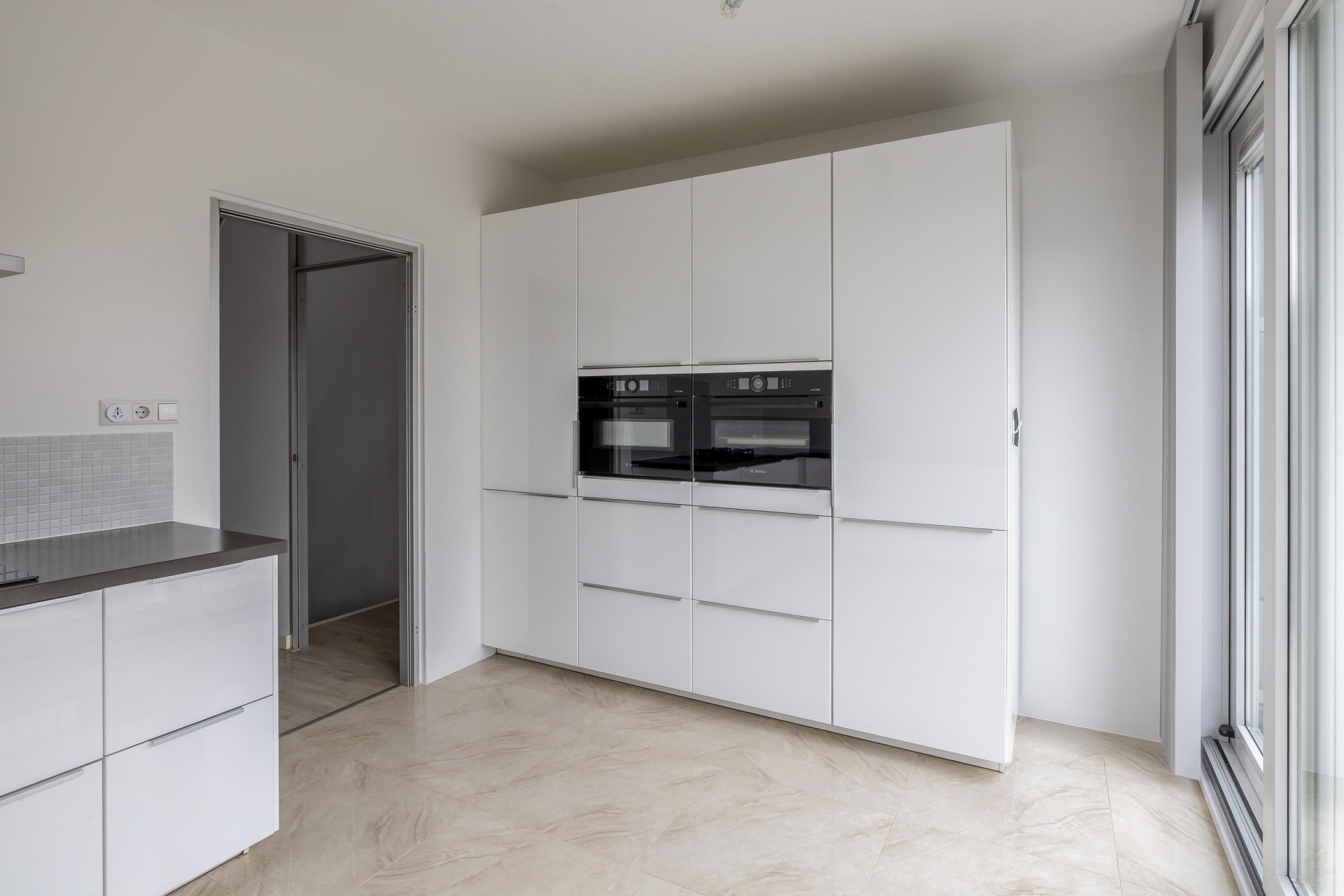 Op de eerste verdieping valt meteen de hoeveelheid licht op. Aan de voorzijde bevindt zich de royale woonkamer met groot raam en prettig uitzicht over de rustige straat. De strakke afwerking, lichte wanden en moderne vloer zorgen voor een rustige basis waarin je alle kanten op kunt met je eigen stijl. Aan de achterzijde ligt de keuken, voorzien van modern wit keukenblok met donker werkblad, een gaskookplaat en veel werkruimte. Via de schuifpui stap je zo het balkon op: een heerlijke plek om met een kop koffie of een goed glas wijn van de buitenlucht te genieten.