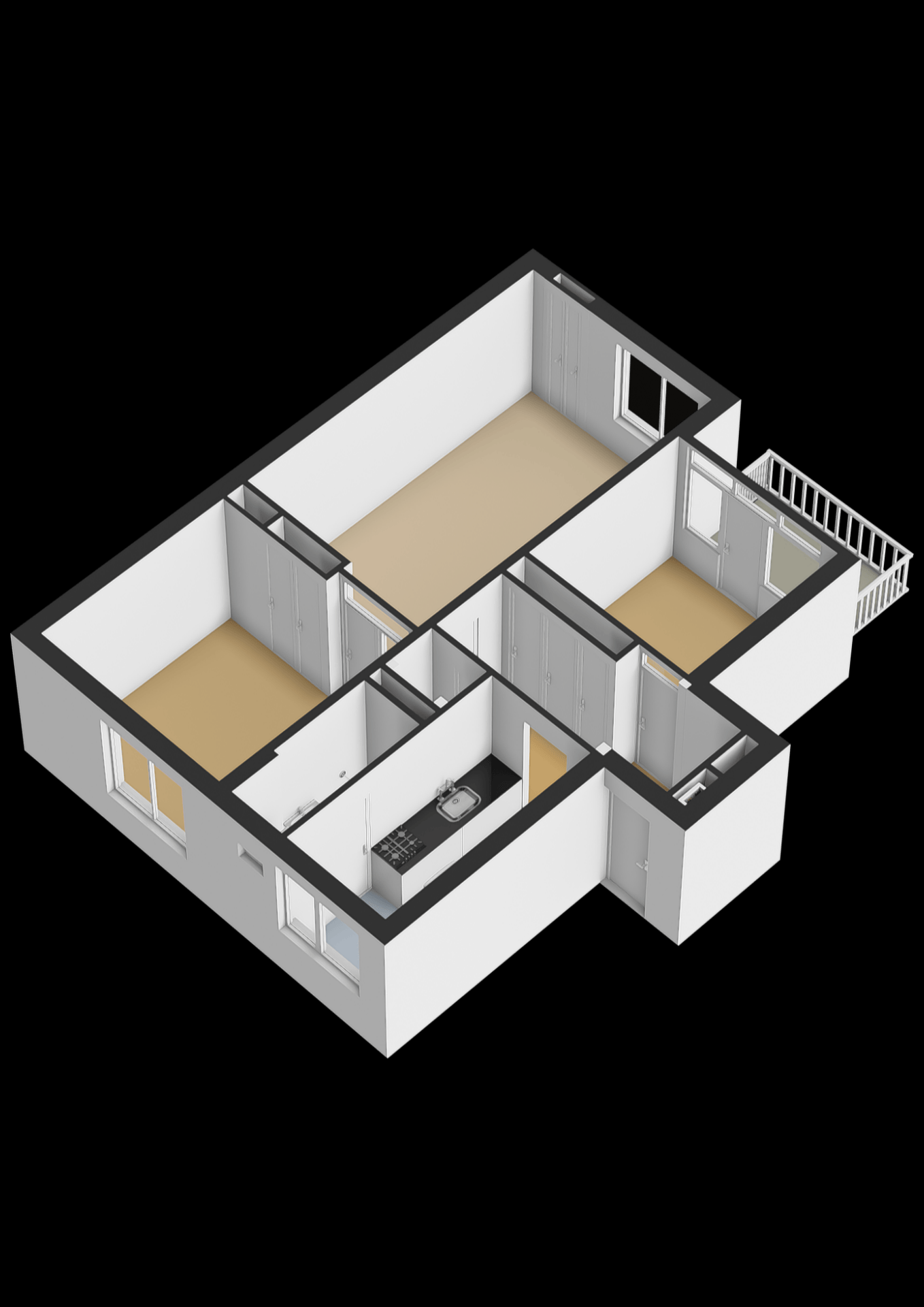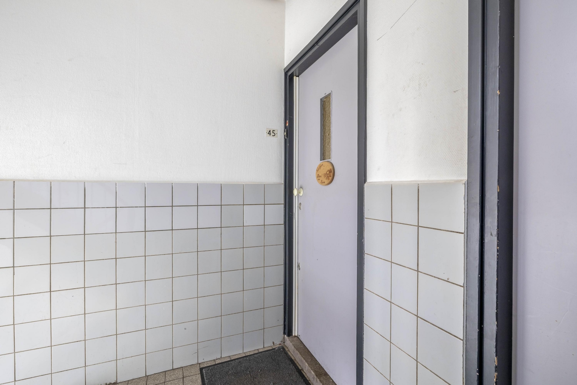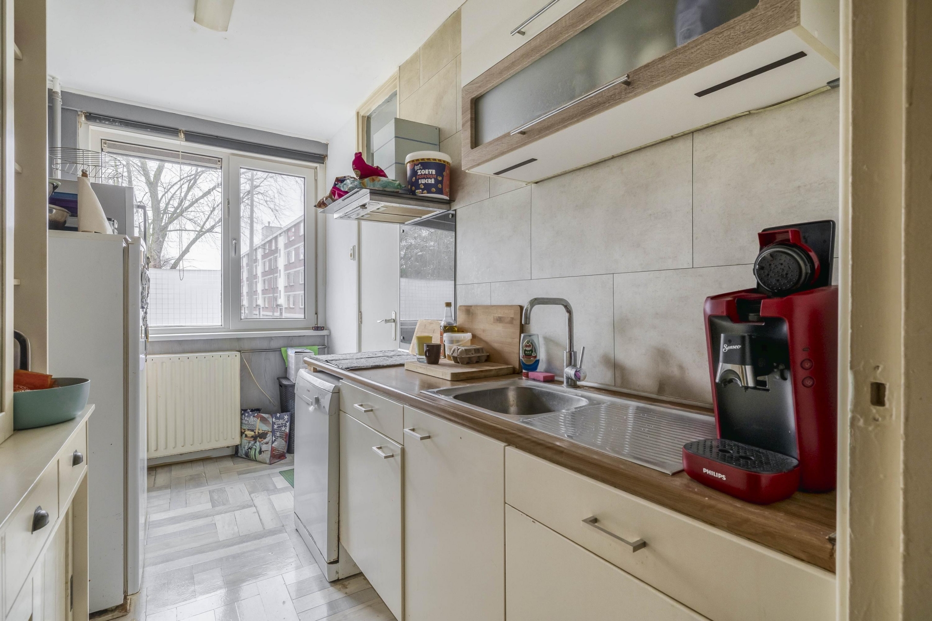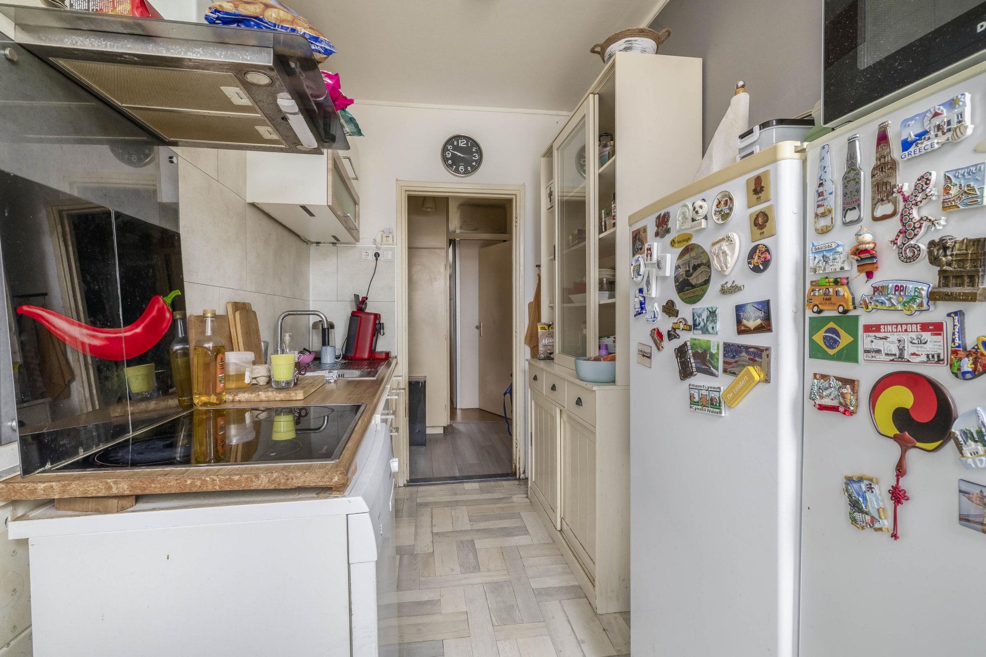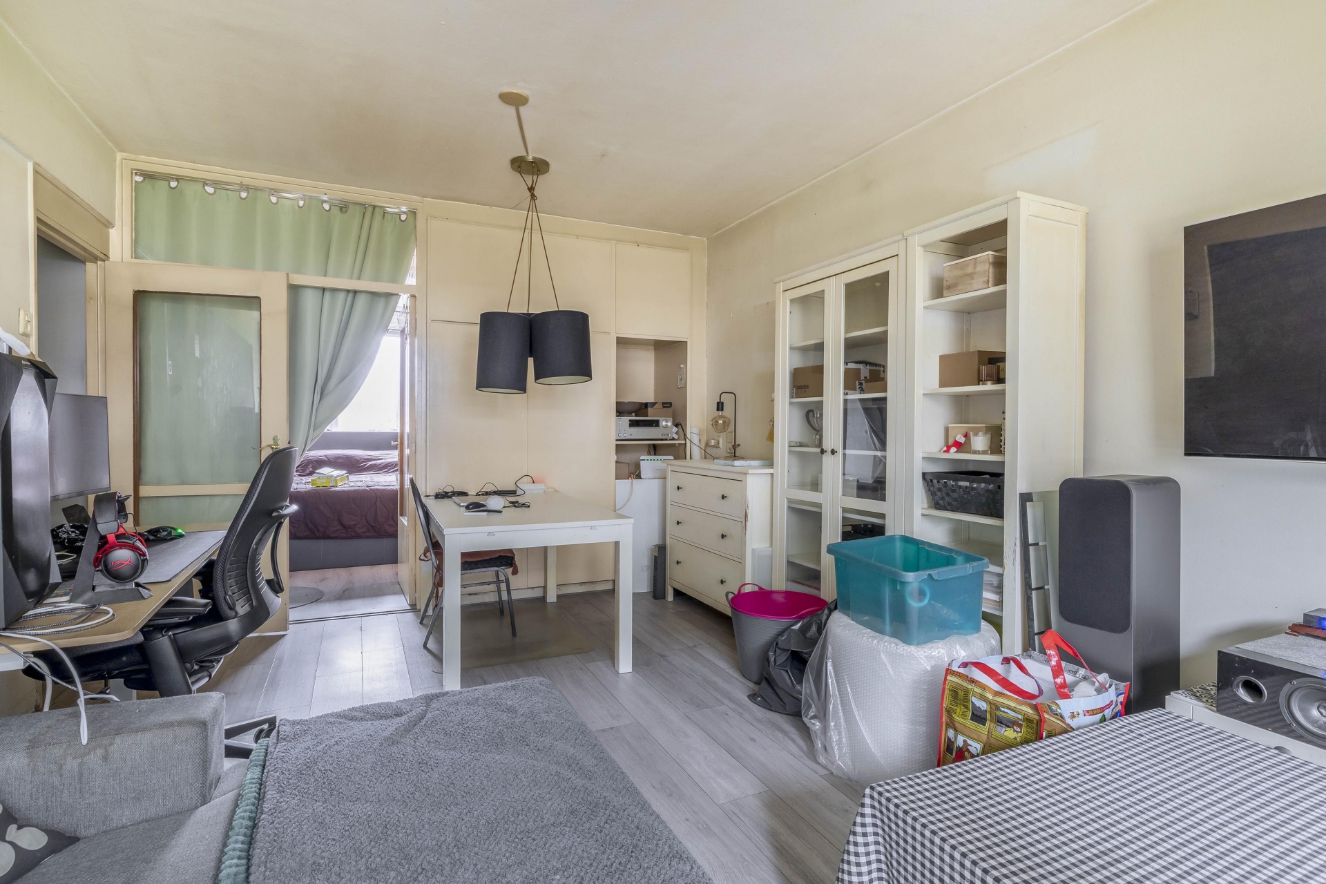 Bij binnenkomst stap je de hal binnen van waaruit je toegang hebt tot alle vertrekken. De woonkamer is knus maar licht, met grote raampartijen die zorgen voor een prettige sfeer. Er is genoeg plek voor een zit- en eethoek en via de kleine slaapkamer bereik je het balkon – gelegen op het westen. Ideaal voor een avondzonnetje na je werk. De aparte keuken heeft een rechte opstelling met voldoende werkruimte, en biedt tevens toegang tot de badkamer. Het toilet is apart gesitueerd, wat extra comfort biedt. De keuken is netjes en functioneel ingericht, met een lichte kleurstelling en praktische indeling.