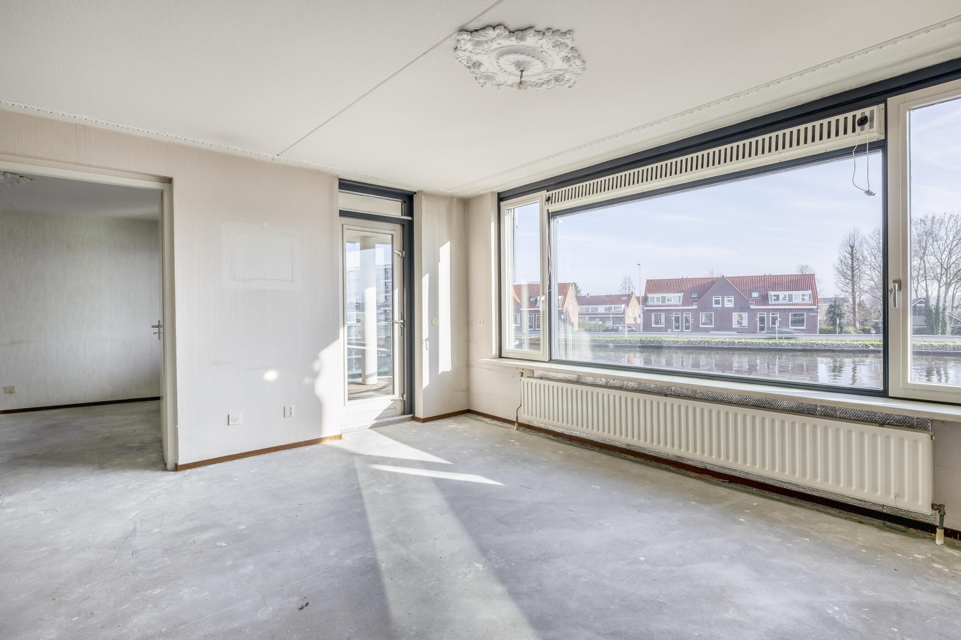 Aan de voorzijde van het appartement ligt een balkon op het zuidoosten – een heerlijke plek met een geweldig uitzicht over de Gouwe. Vanwege de gunstige ligging zit je hier heerlijk lang in de zon. Het balkon kijkt uit op een rustige straat en heeft genoeg ruimte voor een gezellig zitje.