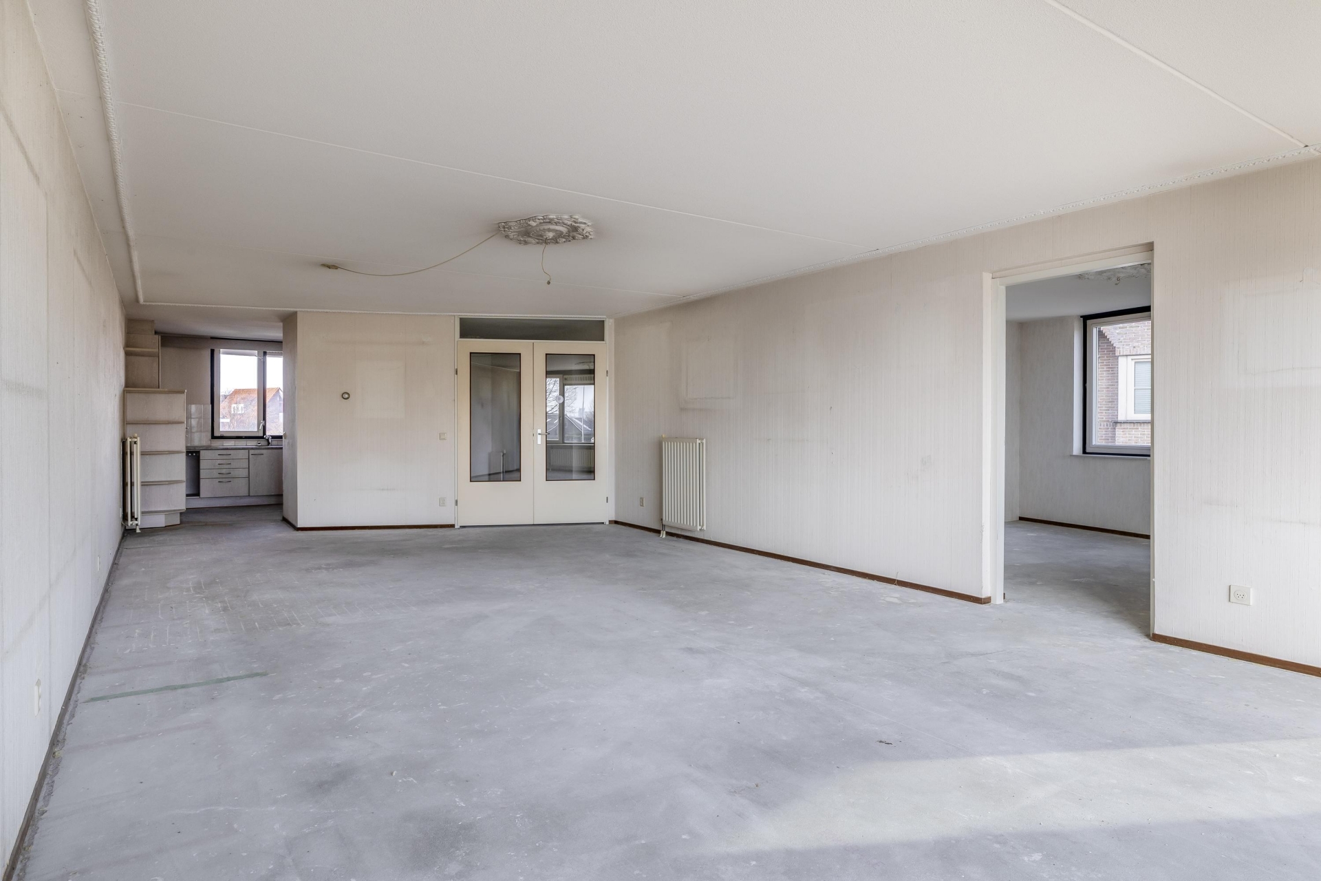 De woonkamer is opvallend ruim en licht dankzij de grote raampartijen aan de waterzijde. Hier heb je volop plek voor een grote zithoek én een eettafel, zonder in te leveren op bewegingsruimte. Het appartement beschikt over twee volwaardige slaapkamers. De grootste kamer grenst aan het balkon en biedt genoeg ruimte voor een tweepersoonsbed en kastenwand. De tweede kamer is ideaal als logeerkamer, werkkamer of hobbyruimte. Ook de badkamer is prettig ruim en beschikt momenteel over een douche, bidet, wastafel en aansluiting voor de wasmachine. Daarnaast is er een apart toilet in de hal, net als een extra bergkast. Alles is gelijkvloers en goed bereikbaar, wat dit appartement bijzonder geschikt maakt voor wie toekomstgericht wil wonen. Het appartement biedt een goede basis om naar eigen smaak te moderniseren.